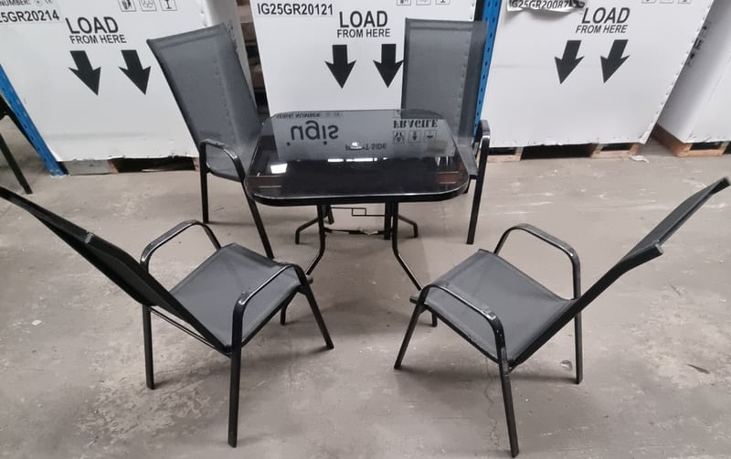 Dining table set, black tempered glass table, 4 x mesh like chairs,metal frame