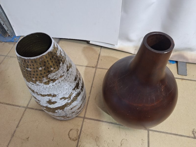 X2 Table Vases, Timber & Metal Style SOLD AS LOT