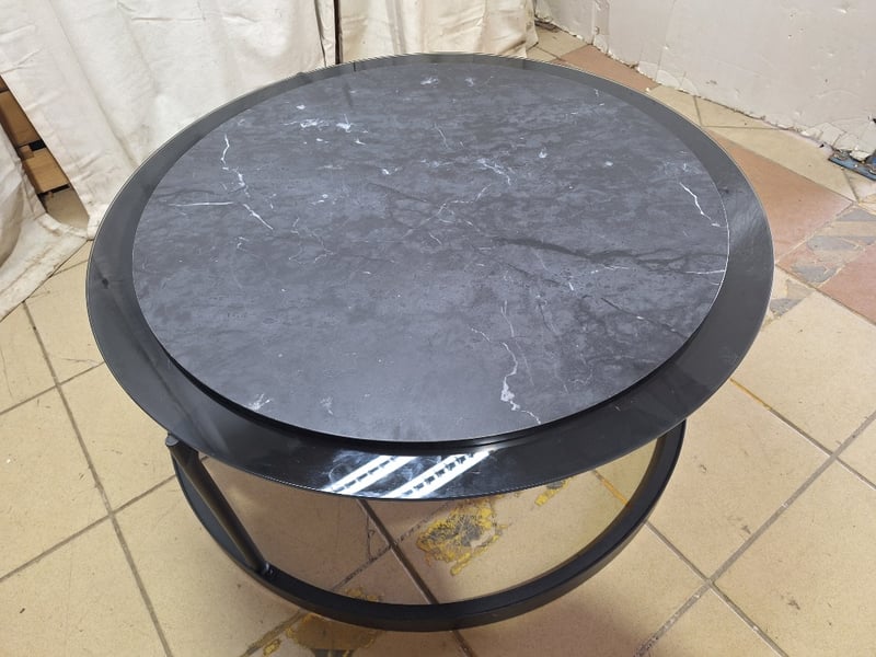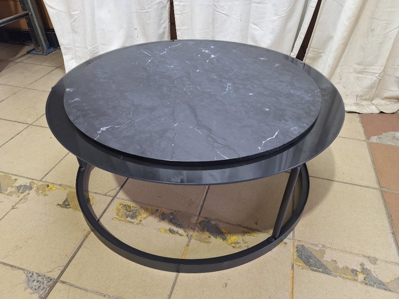 Coffee Table With Glass Top, Metal Style, Black Finish