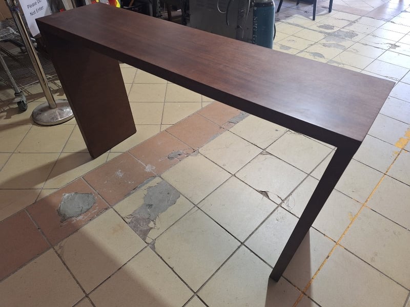 Hall Table, Timber Style, Brown Finish Dimensions H:81cm W:140cm D:35cm