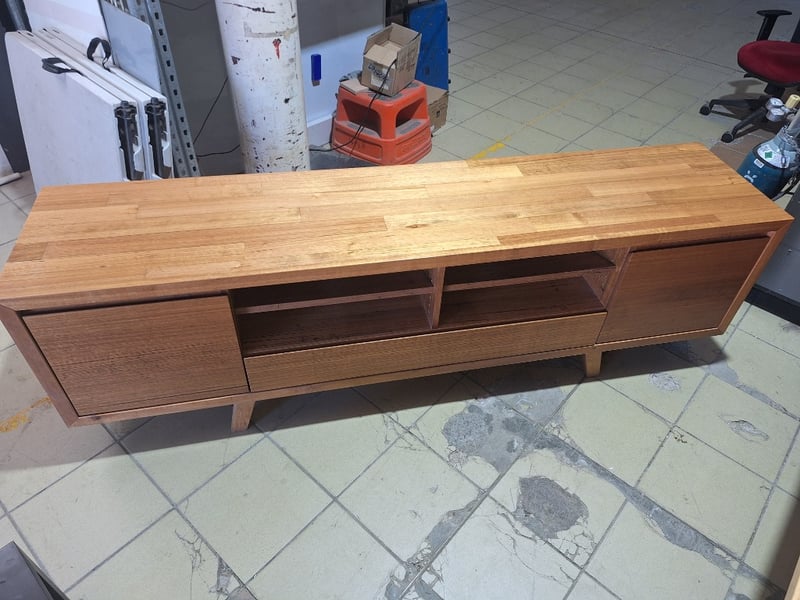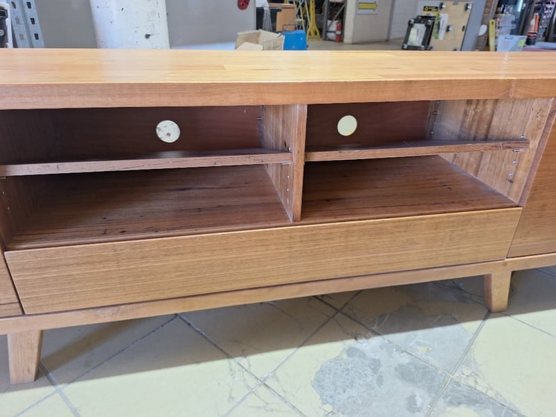 Entertainment Unit With Storage, Timber Style, Natural Finish