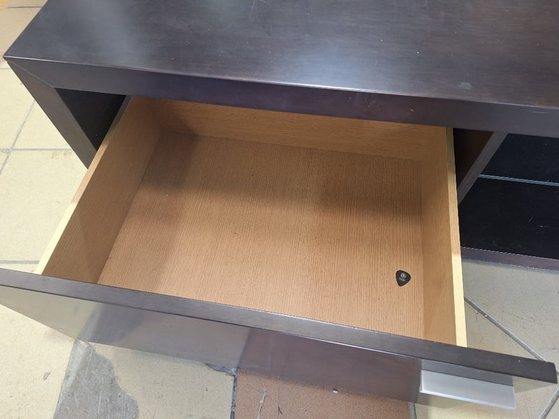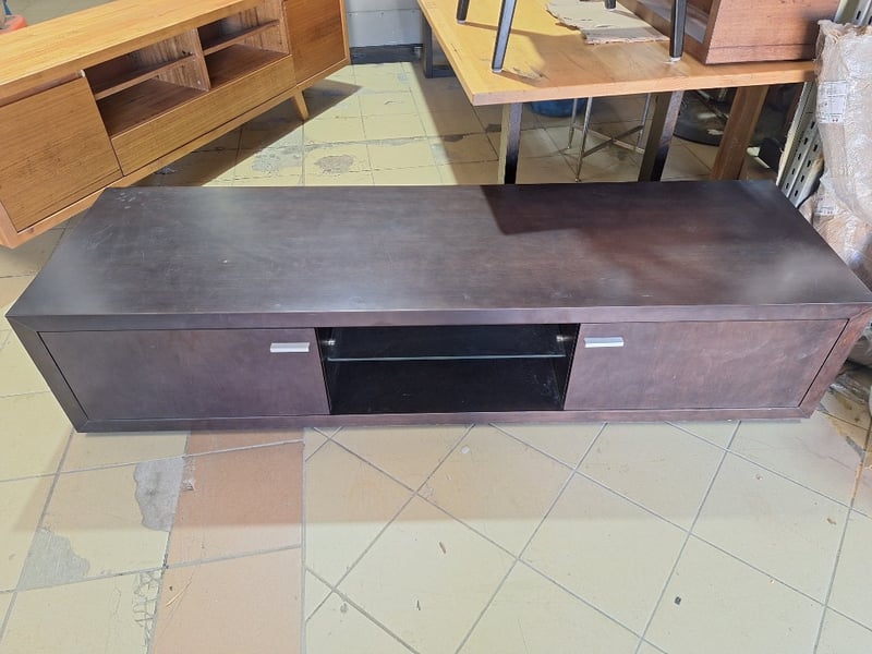 Entertainment Unit With Storage, Timber Style, Brown FinishDimensions H:43cm W:202cm D:60cm