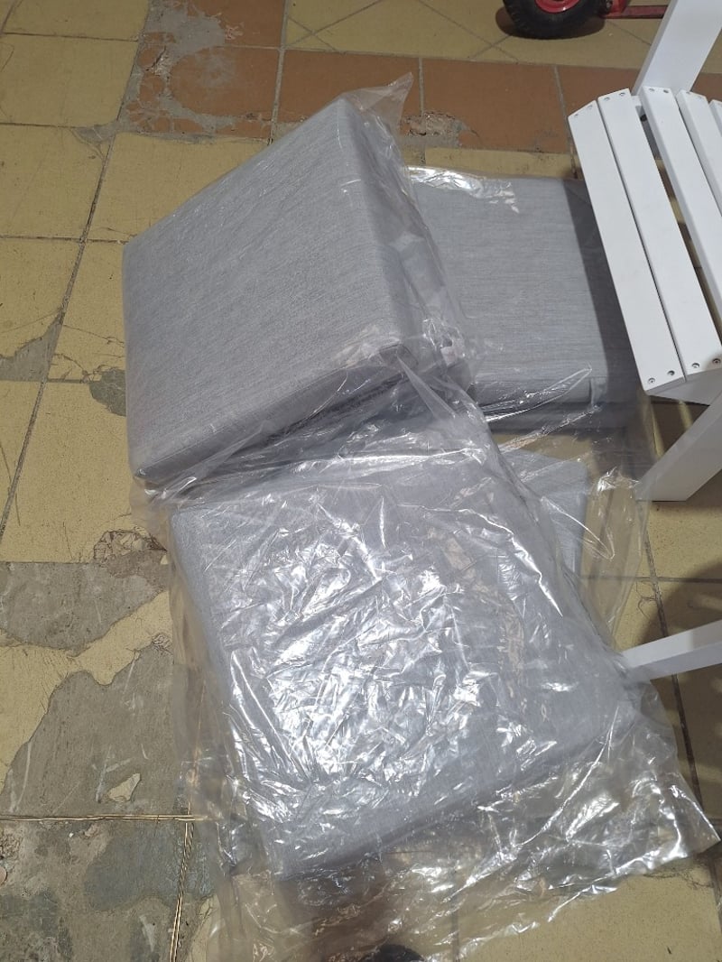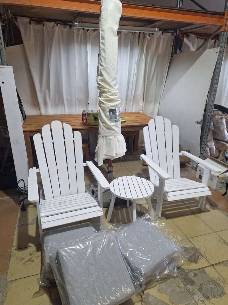 Set Of Outdoor Chairs & Matching Side Table, Beach Umbrella & Cushions SOLD AS LOT