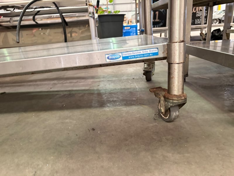 Stainless steel prep bench on castors Dimensions: (H) 900 mm x (W) 1500 mm x (D) 700 mm