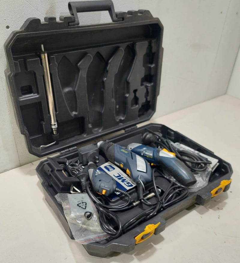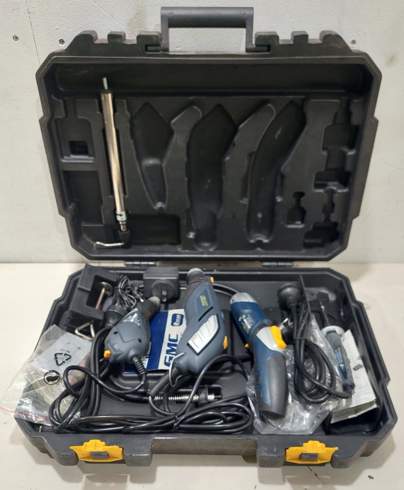 GMC Multi functional rotary tool kit. Notes: item untested and signs of wear and may have missing pieces.