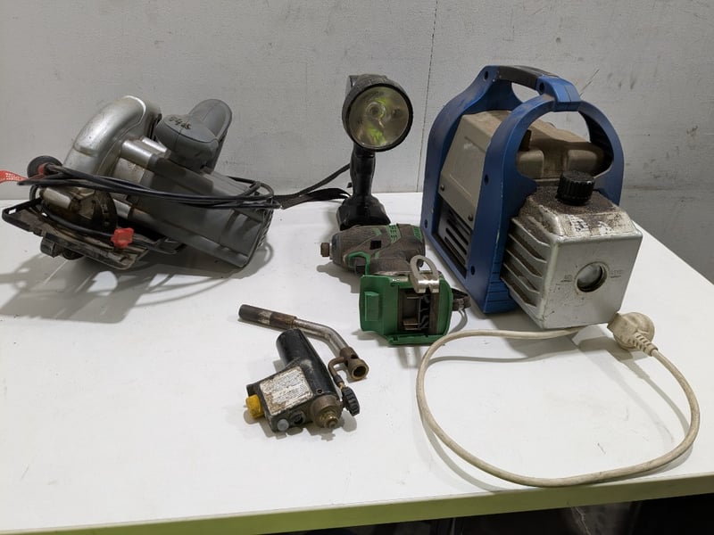 Assorted items including Super-Ego vacuum pump, for HVAC and refrigeration systems, Ozito 185mm (7 1/4 inch) circular saw and more..