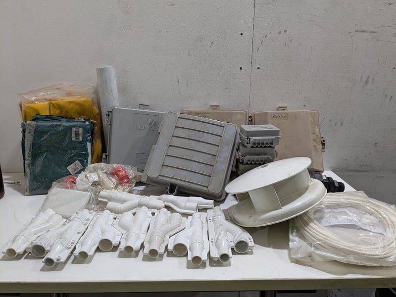 Assorted items including network termination device different brands, Y-connectors and more..