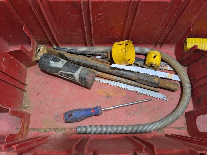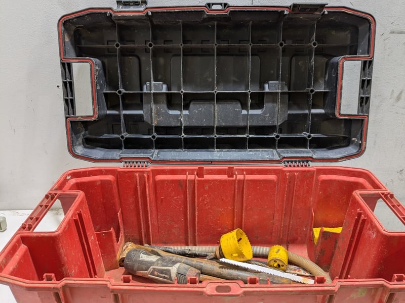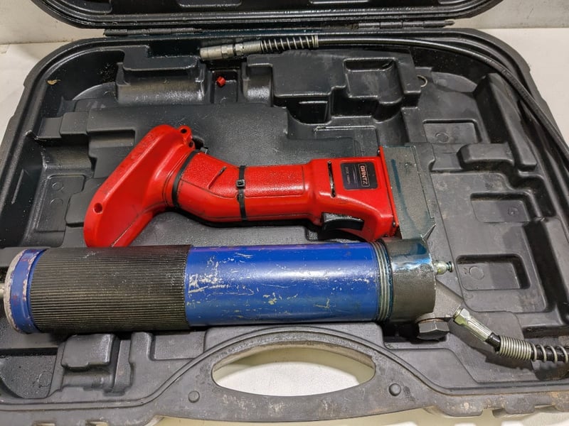Assorted items including portable air-powered grease gun and a cordless rivet tool and more...