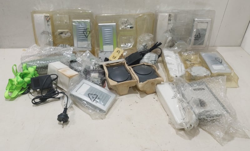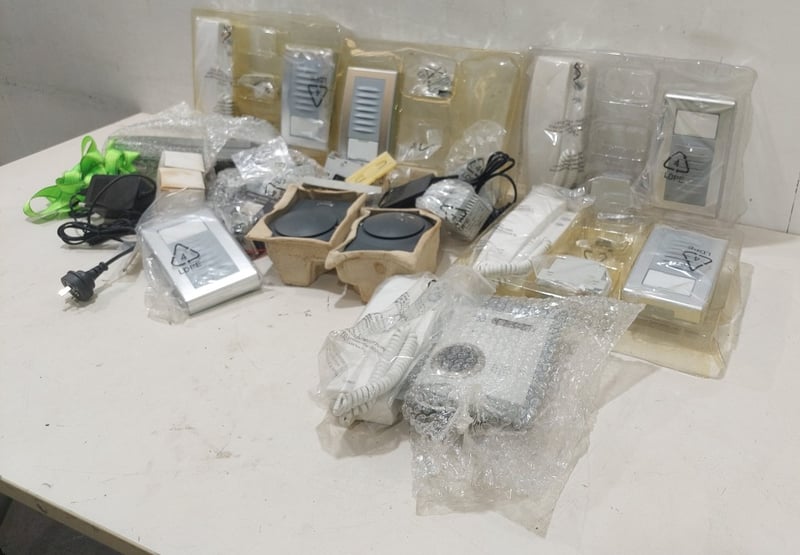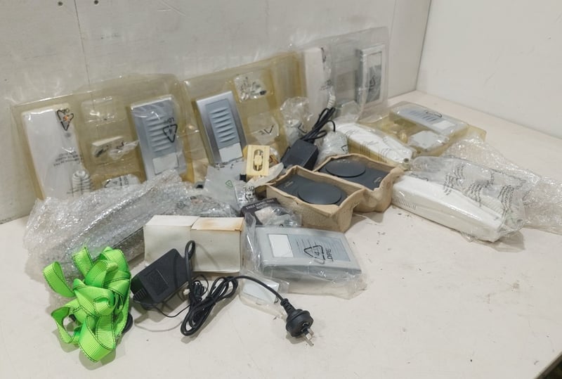 Assorted lot includes, telephone systems, receiver 2.4GHz, transmitter 2.4GHz and more... Quantity to lot. Sold as a lot. Notes:items untested and signs of wear.