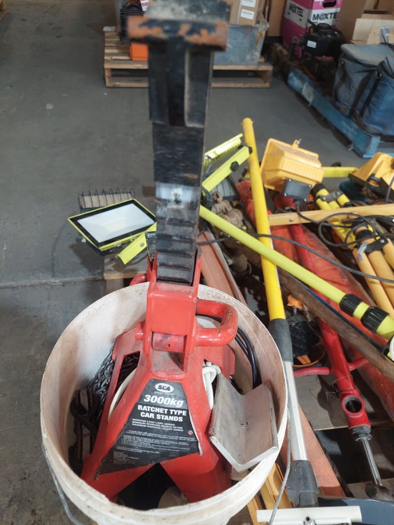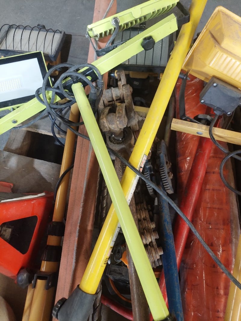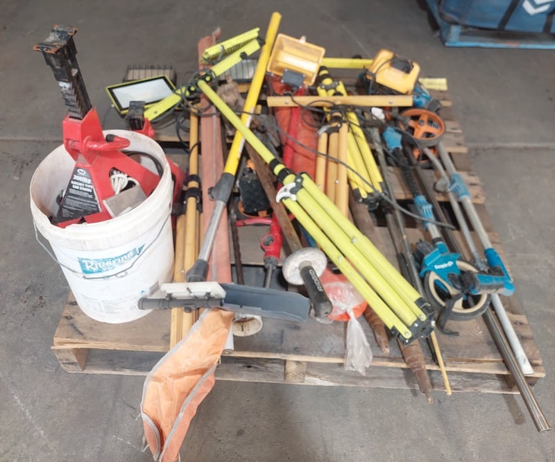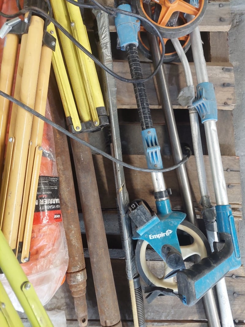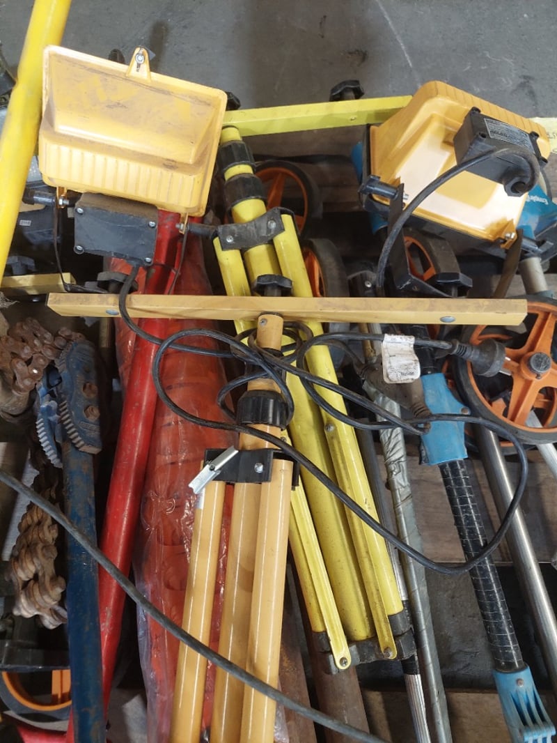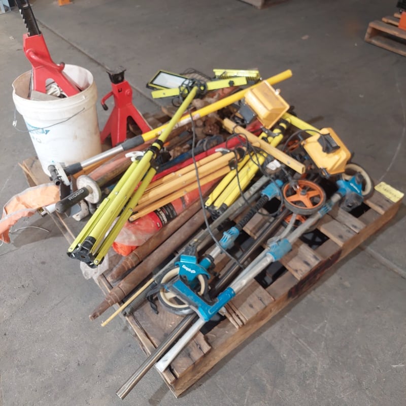 Assorted lot , road construction equipment , includes line markers,lights, ratchet type car stands and more...