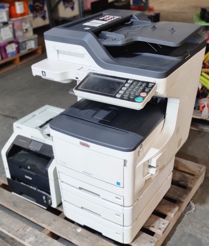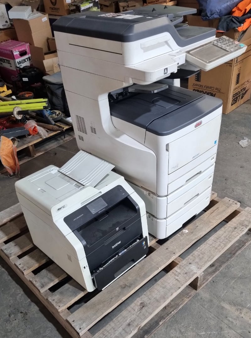 Printer lot l, includes Oki ES8473MFP printer, brother printer Model number: MFC-9340CDW. Sold as lot Note: items untested, signs of wear.