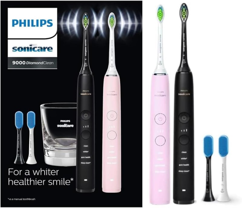 RRP $619 Philips Sonicare DiamondClean 9000 Black + Pink Rechargeable Electric Toothbrush Bundle Pack (HX9914/59) - RETAIL RETURN UNUSED PRISTINE CONDITION