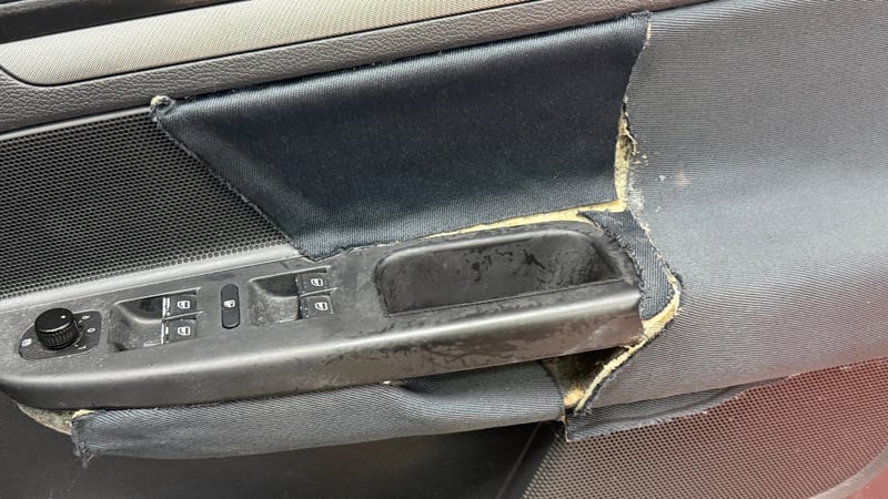 Description/extras: Air Conditioning, Power windows, SRS, Digital dash, Cruise control, Alloy wheels, Central locking. Door panel trim damage and wear, window regulator components visible damage, minor interior trim deterioration, door handle wear and patina. Inspection recommended.