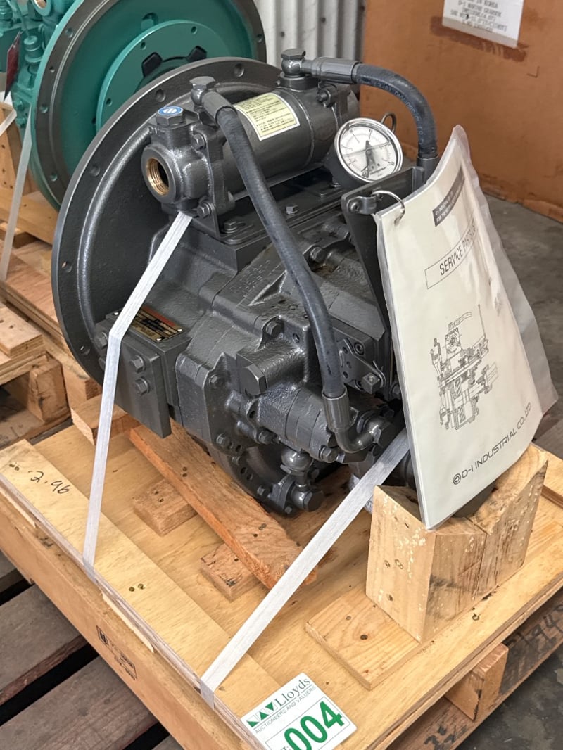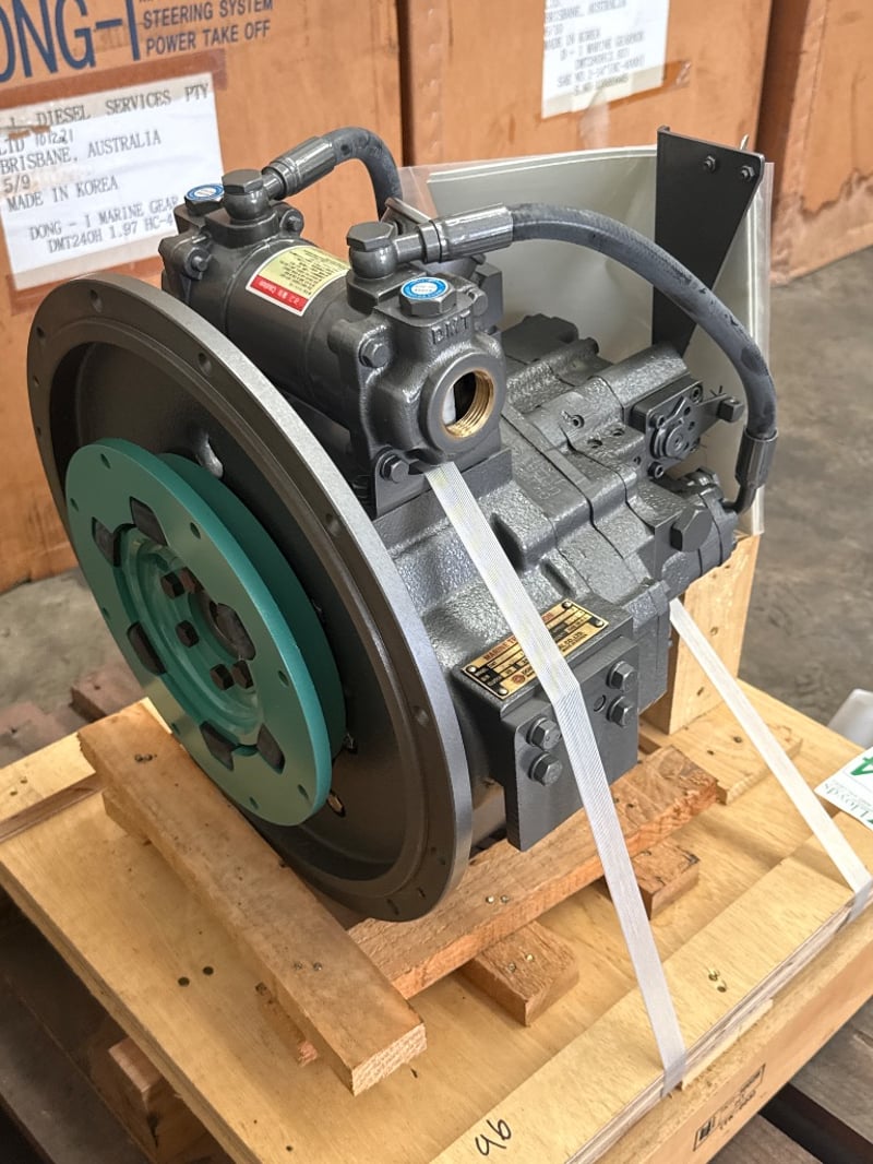 D-I Marine Transmission / Gearbox – DMT25AL (New / Unused) Condition: New, unused – secured on pallet Brand: Dong-I Industrial Co., Ltd Manufactured in: Korea Specifications (from ID plate): • Model: DMT25AL • Reduction Ratio: 2.96 : 1 • Clutch Pressure: 20–24 kg/cm² • Rated 64kw/86hp@2300rpm • Oil Capacity: Approx. 2.0 L • Oil Viscosity: SAE 30 H.D. • Serial No.: DT1581949J • Type: Marine transmission / gearbox Onsite Location: Tweed, NSW ( Not Lloyds Branch )