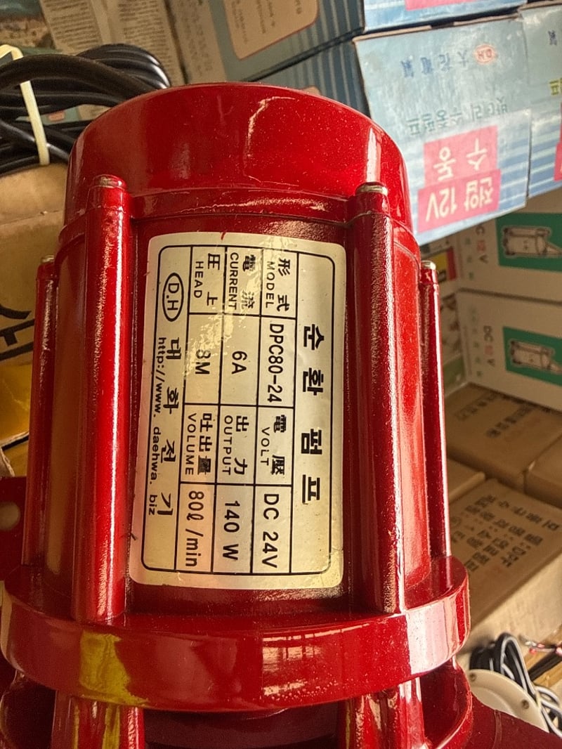 2x 24V DC Circulation Pump – Daehwa DPC80-24 Condition: New / Unused (boxed) Brand: Daehwa Electric (D.H) Model: DPC80-24 Type: DC circulation pump Specifications: • Voltage: DC 24V • Power Output: 140W • Current Draw: 6A • Maximum Head: 8 metres • Flow Rate: 80 litres per minute Onsite Location: Tweed, NSW ( Not Lloyds Branch )