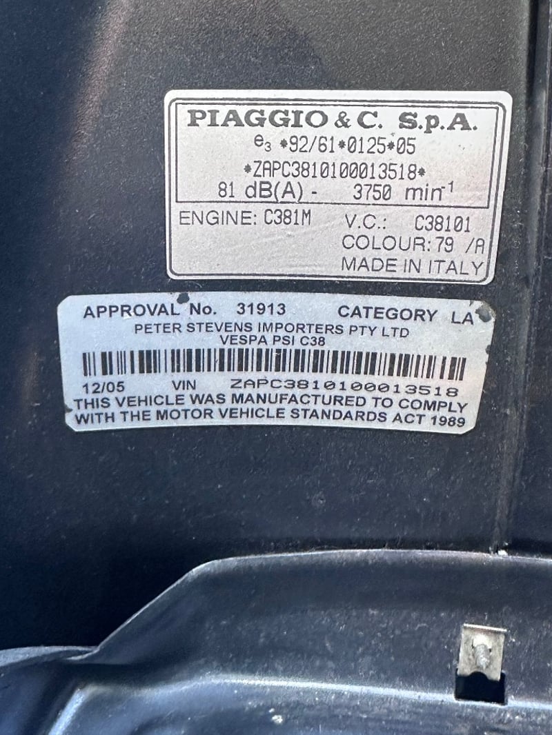 2005 Vespa LX5005A Midori Scooter Year: 2005 Make: Vespa Model: LX5005A Series: C38101 Odometer: Indicating 4 Kilometers only Transmission: Automatic Colour: Lime Green & Black Description/extras: Promo Midori Livery Vespa Scooter with just 4kms! Such a rare find - Reported to be just 4 made for promotional giveaways and this one with just 4kms, its never been on the road. Currently with a flat battery - would require a new battery to be up and running, but otherwise all as it was delivered 20 years ago! Complete with Manuals & 2 Keys VIN: ZAPC3810100013518 ENG No: C381M39245 Lloyds stock #586640+1 Location: Tweed, NSW