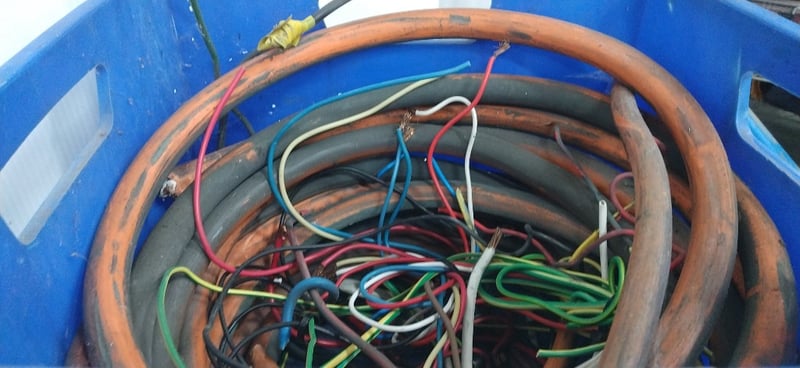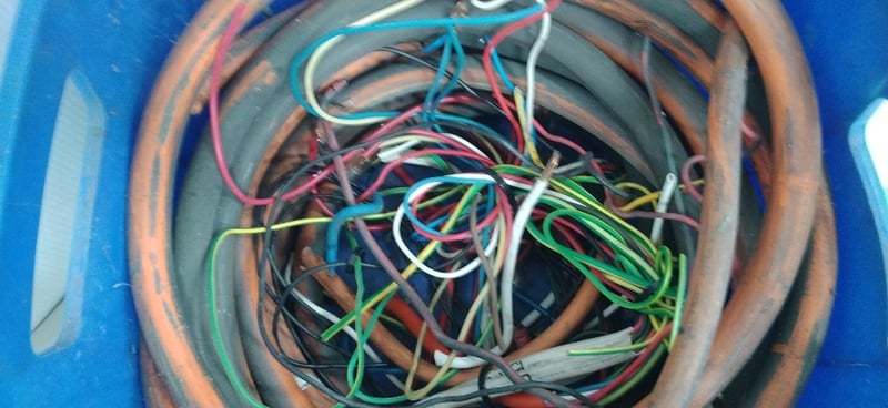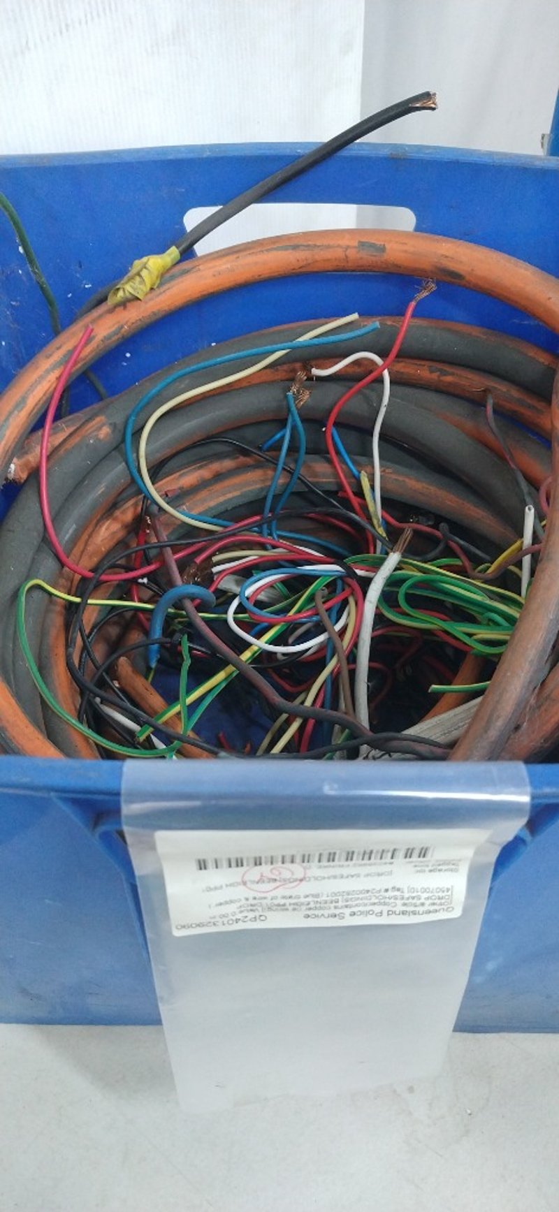 Blue Crate With Assorted Lengths Of Wire SOLD AS LOT