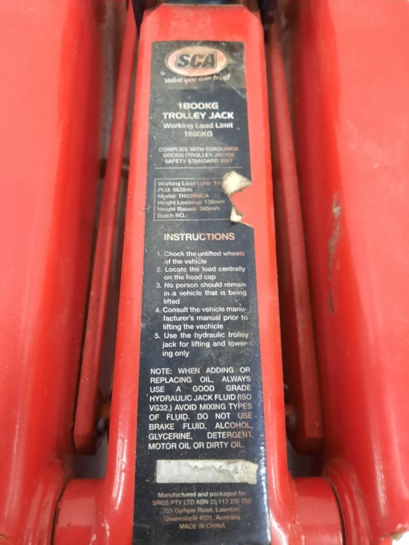 Red heavy duty car jackDimensions: H: 15cm W: 54cm D: 22cm