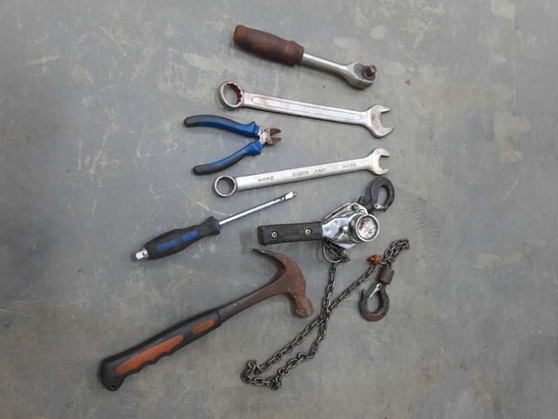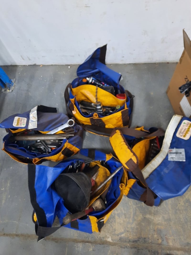 4x blue and yellow bags containing hand toolsSOLD AS LOT