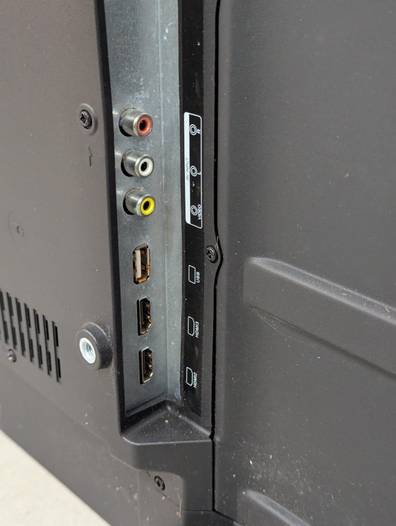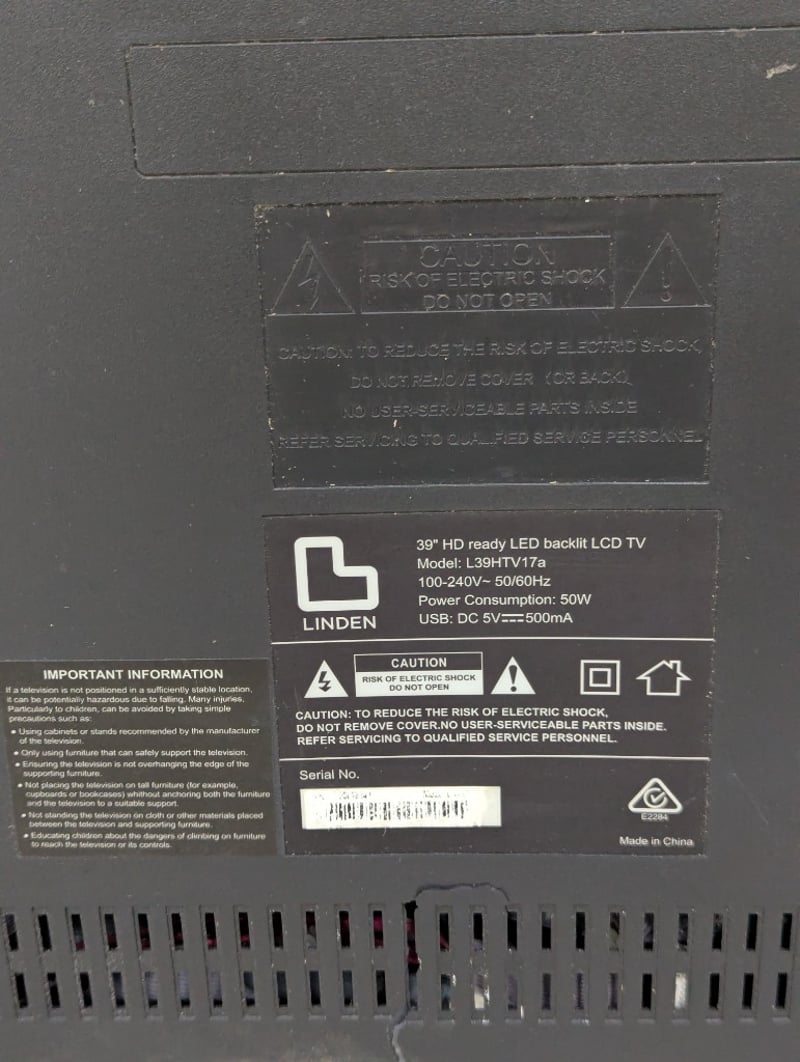 Television, cracks on screen, no power cable supplied Dimensions: H 55cm x W 88cm x D 20cm