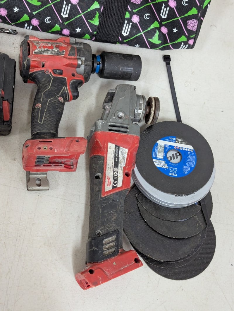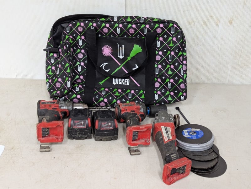 Cordless Power Tools, Batteries and various hand tools in duffle bag
