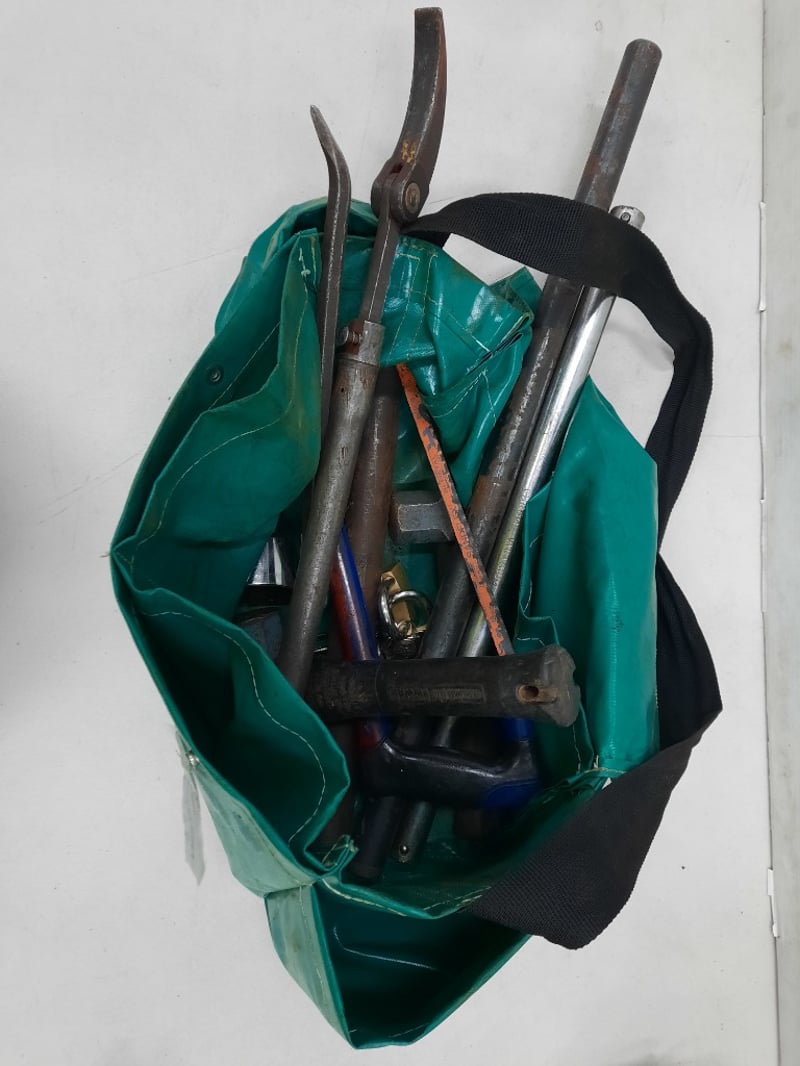 Green bag containing hand toolsSOLD AS LOT
