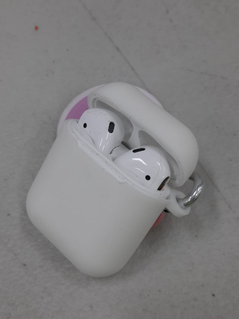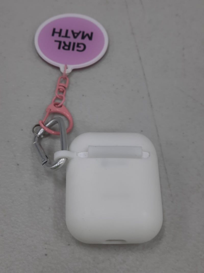 Airpods with pink key ring "girl math"
