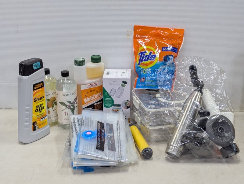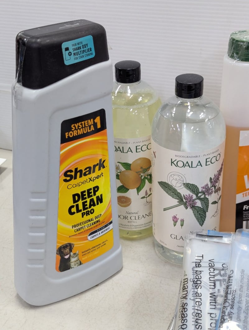 Assorted household items, includes glass cleaner, floor cleaner vacuum sealed bags, drain cleaner and moreSOLD AS LOT