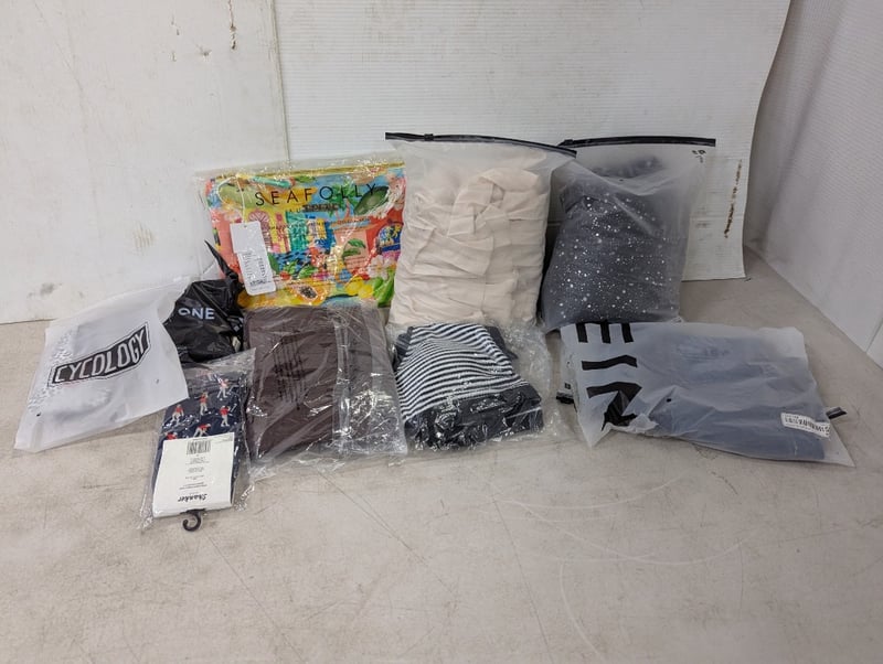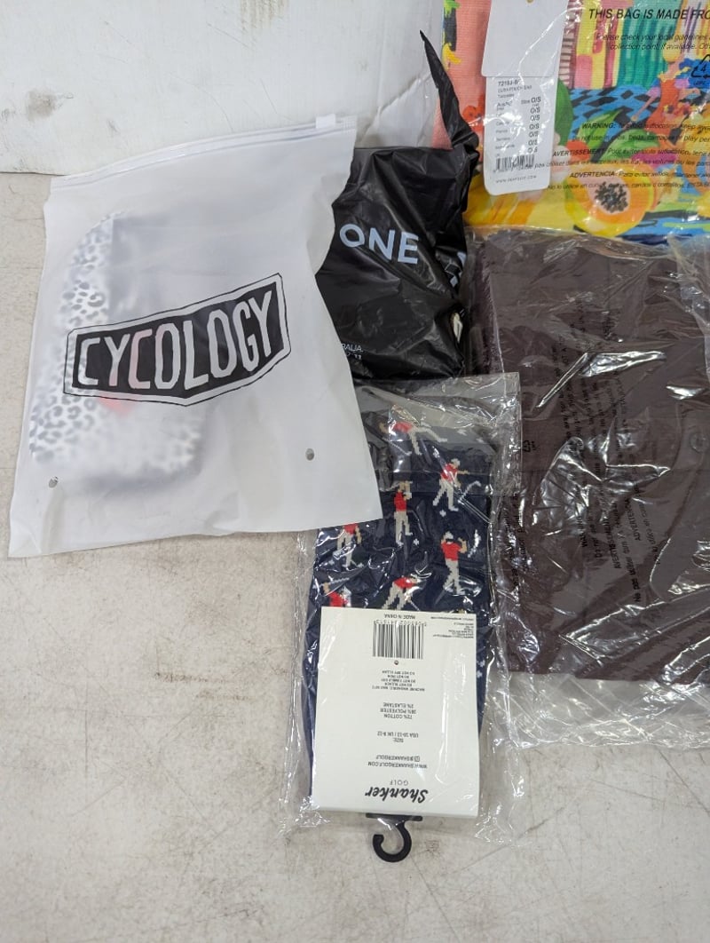 Assorted clothing, includes dress, shorts, socks and moreSOLD AS LOT