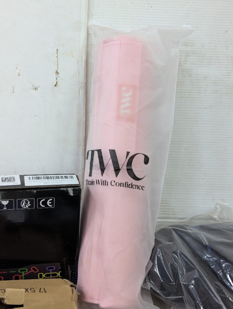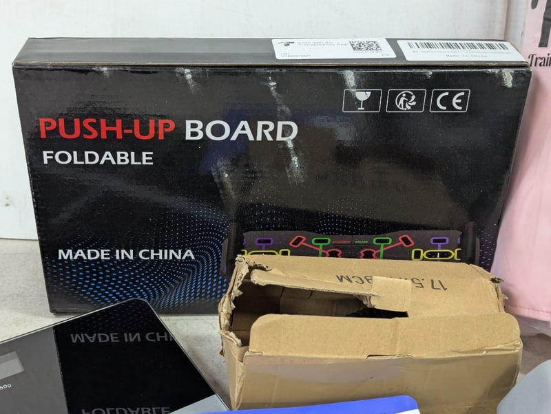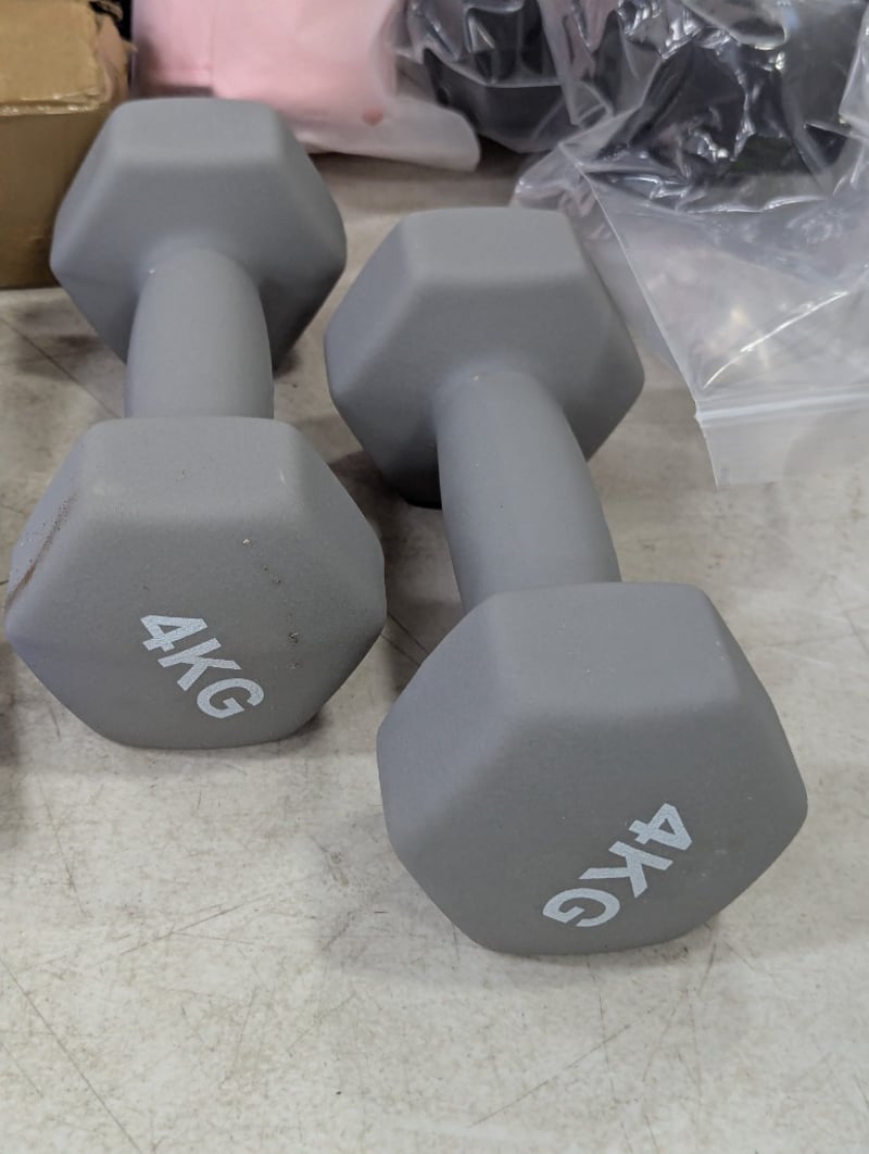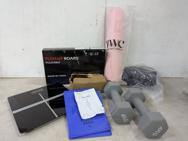 Assorted fitness products, includes push up board, 4kg dumbbells, bike seat, punching bag hanger and moreSOLD AS LOT