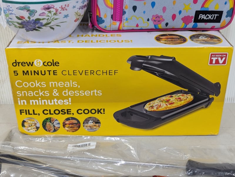 Assorted kitchenware, includes Cleverchef, freezable lunch box, bowls and more