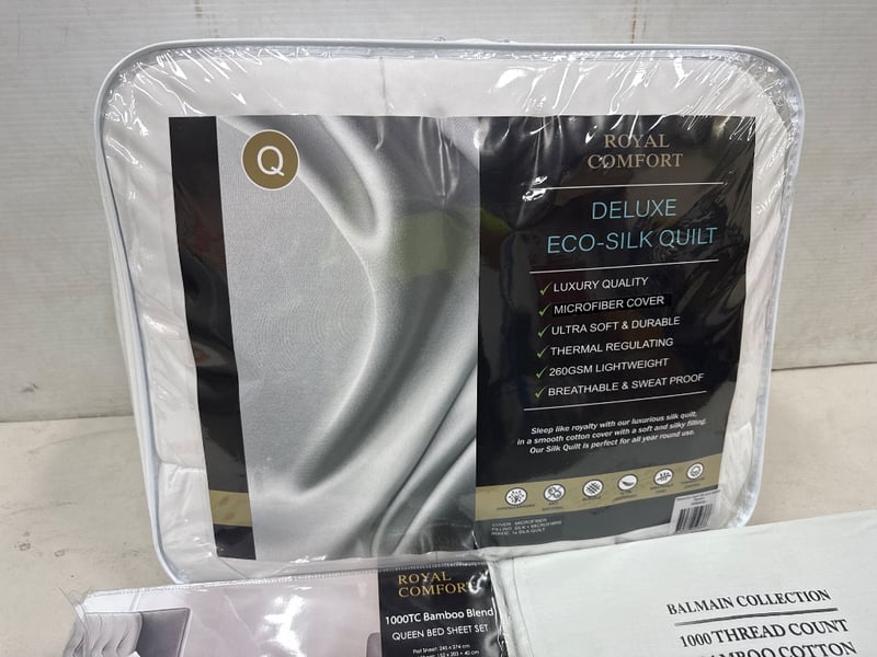 Royal Comfort, Deluxe Eco Silk Quilt, Bamboo Blend Queen Bed sheetsold as lot