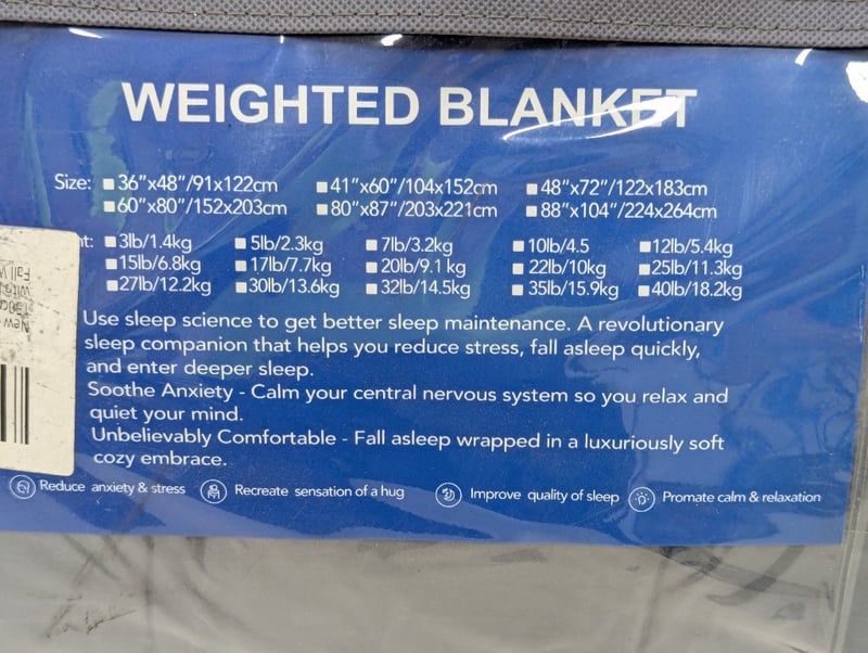 Weighted Blanket, 9.1kg, 150cm x 203cm, grey