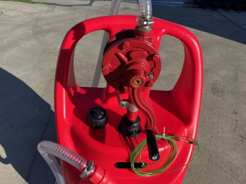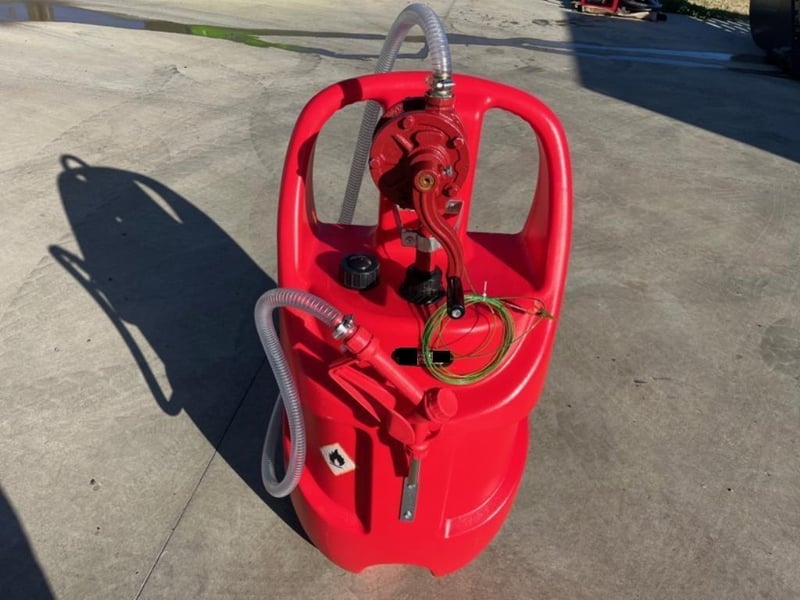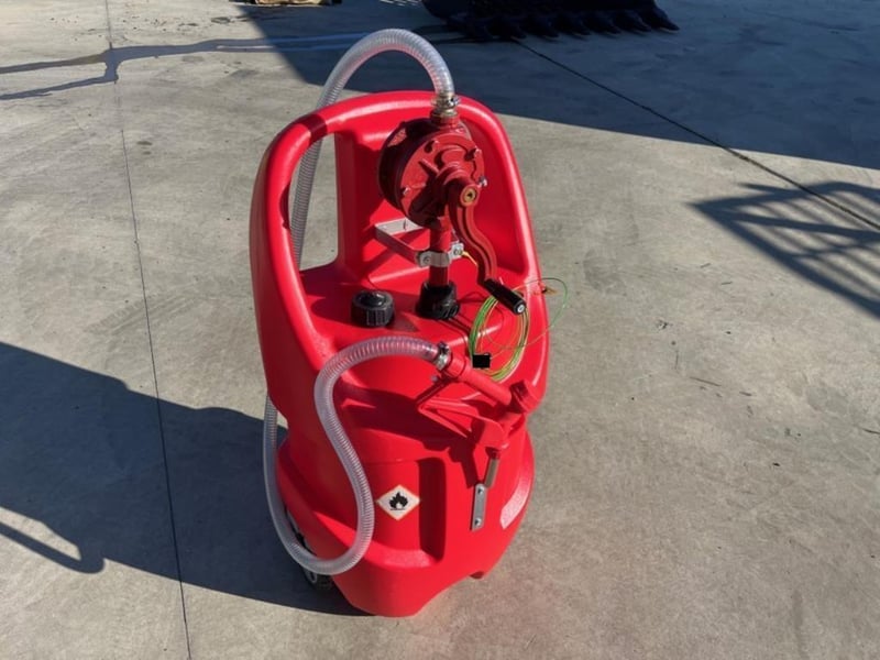 Unused 75L Portable Fuel Tank with Manual Pump,, Model: GM7801, Maximum Flow: 20 lpm, 4m of ¾ inch Delivery Hose, Shipping Dimensions: 525mm x 425mm x 1015mm, Weight: 15kg
