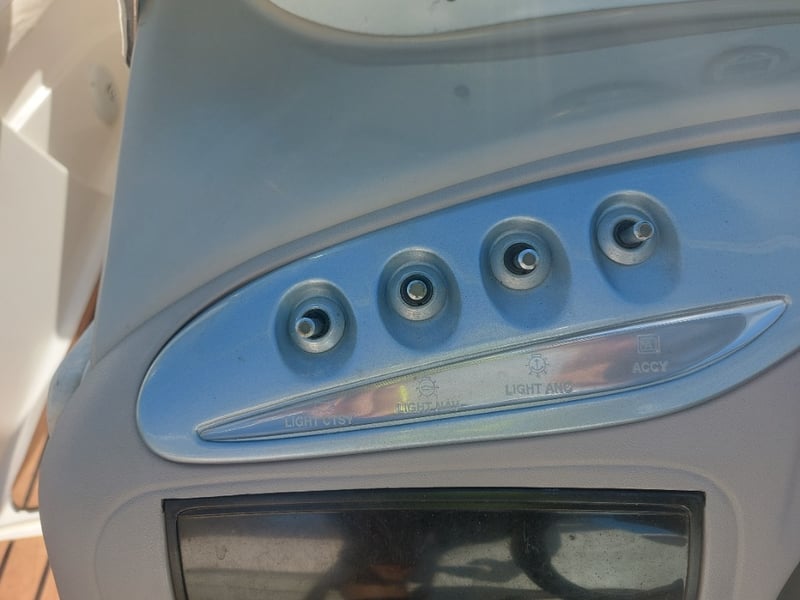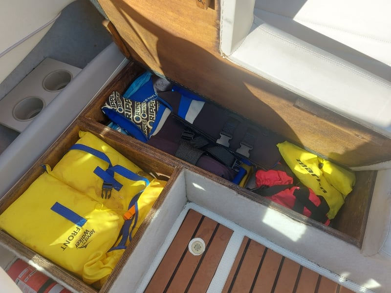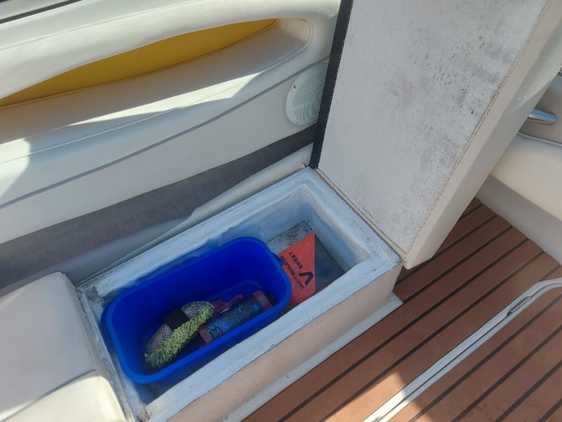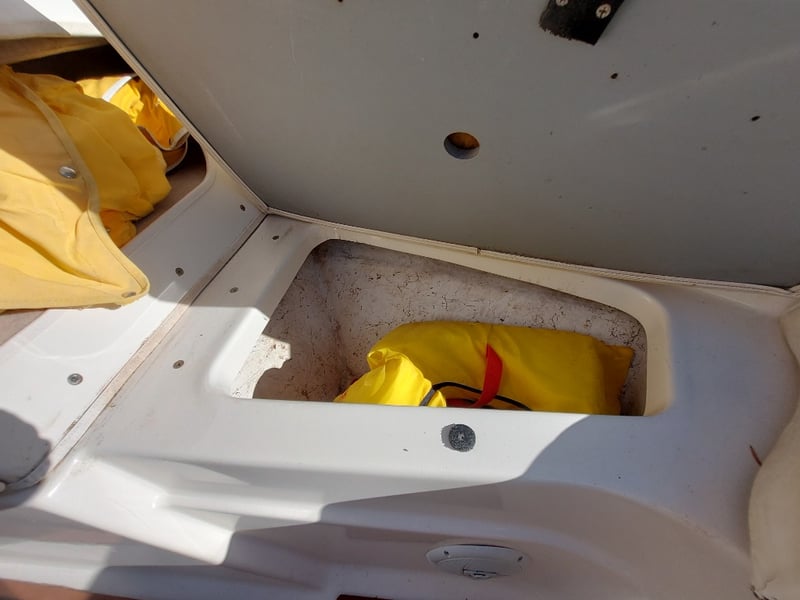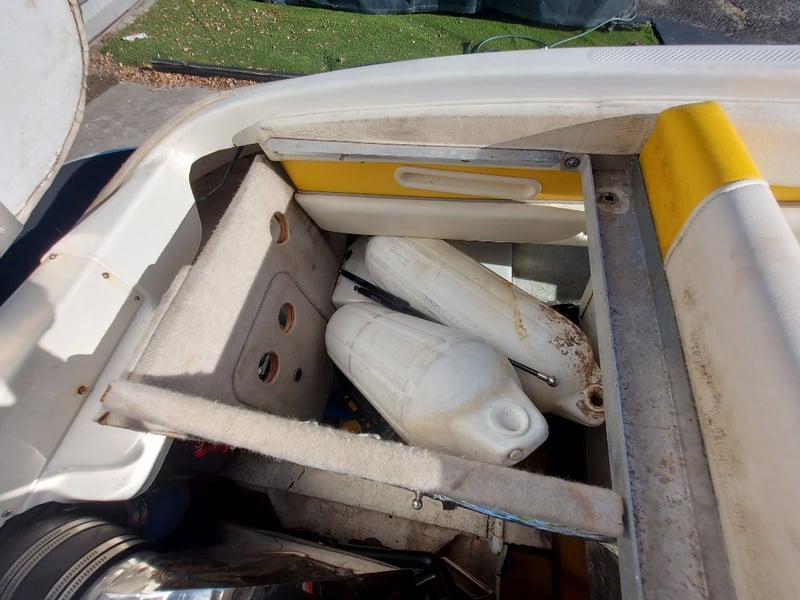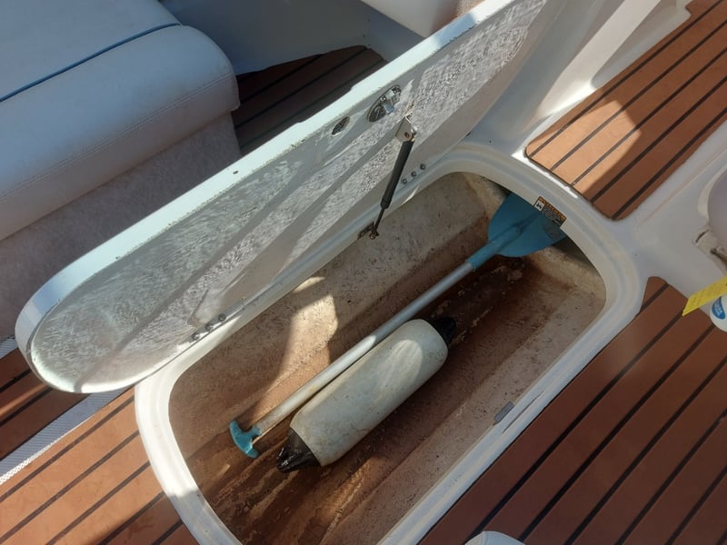 Description: Front Step Up Ladder, Gauge Cluster, Accessory Switches, Manual Hydraulic Rods For Engine Bay Cover Are Not Attached But In Storage Area Inside, Removable Bench Top, Life Jackets, Anchor On Rope, Oar, Fenders