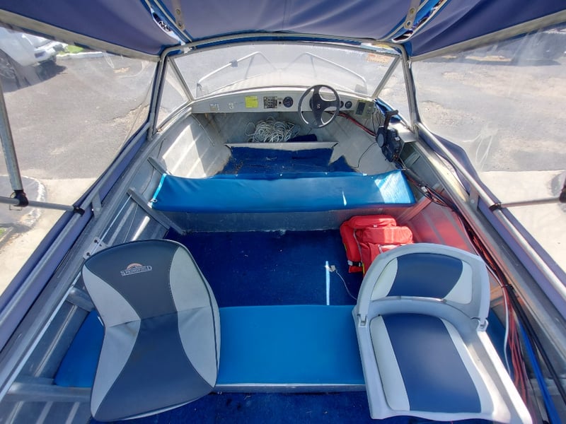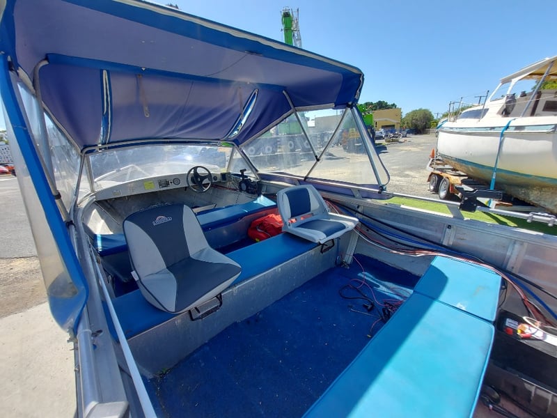 Description: Engine Rebuilt 2020, Sitting For 2 Years, Life Jackets, Condor Sounder 340C (Unknown Working Condition, Could ), Rust & Damage On Outboard (See Images), Oars, Gauge Cluster, Hydraulic Steering Does Not Work (Inspection Highly Advised)