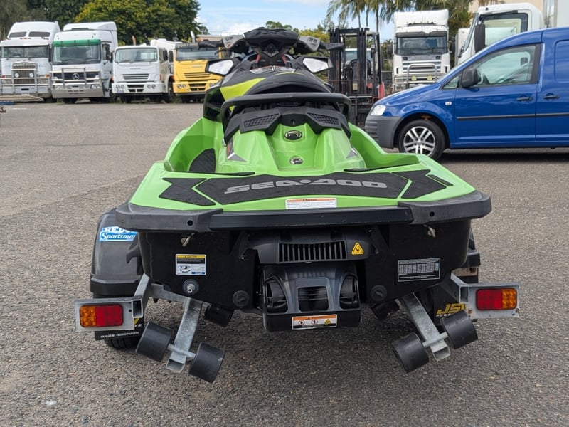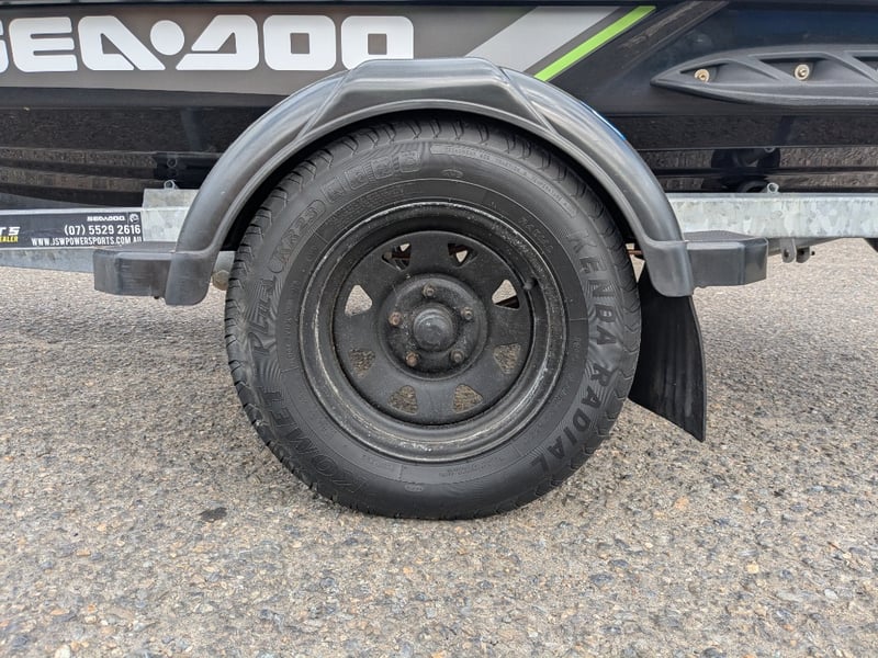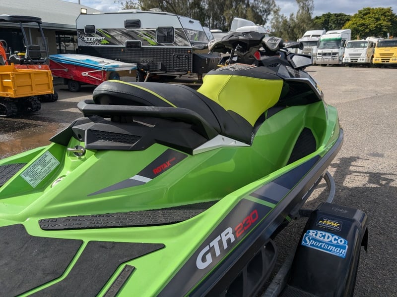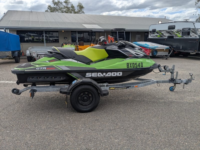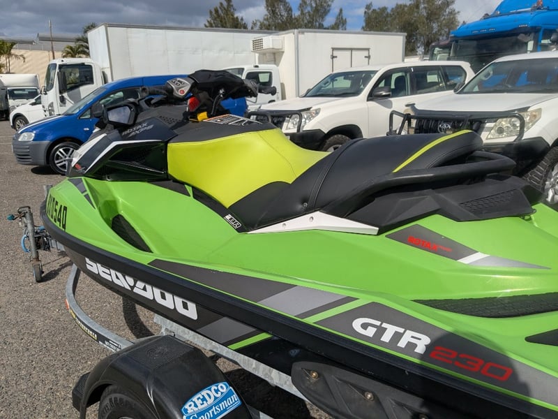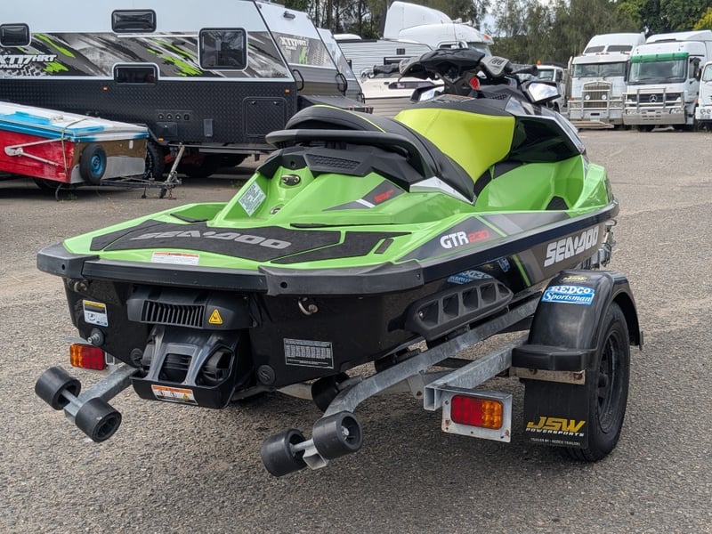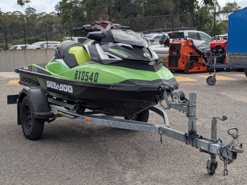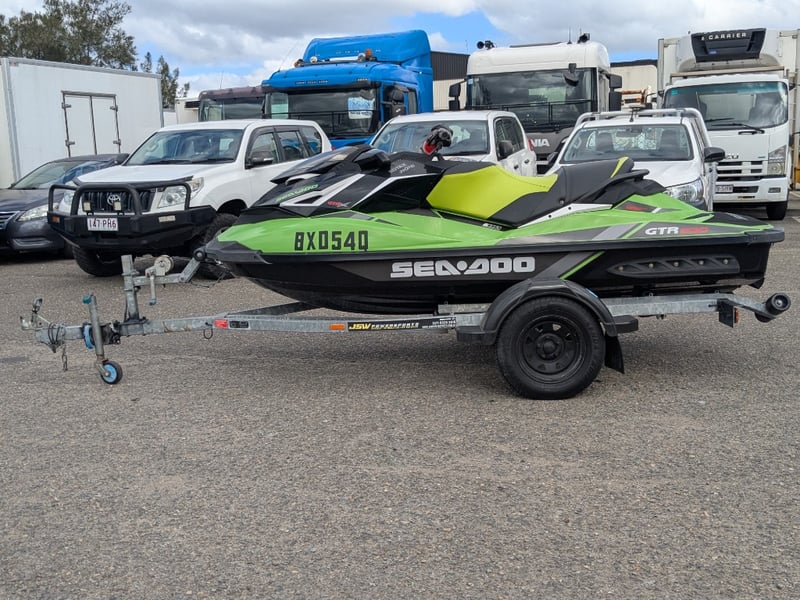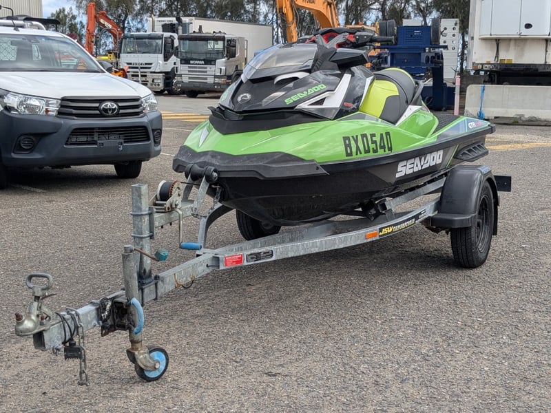 2017 Seadoo GTR 230 Year: 2017 Make: SeaDoo Model: GTR230 Colour: Green/Black Engine Hours Indicating: 129h Description: Front Hull Storage, HIN: CA-YDV52477E717 SOLD UNREGISTERED ON A TRAILER: Year: 2018 Make: JSW PowerSports Trailers Model: RE1213WR Configuration: Single Axle Suspension: Leaf Suspension Description: Manual Winch, 7 Pin car connection, Chassis No.: 6H4RE121318005064 ATM: 740kg Tare: 150kg Key # E27 Lloyds Stock# 1040102+1 #MMR