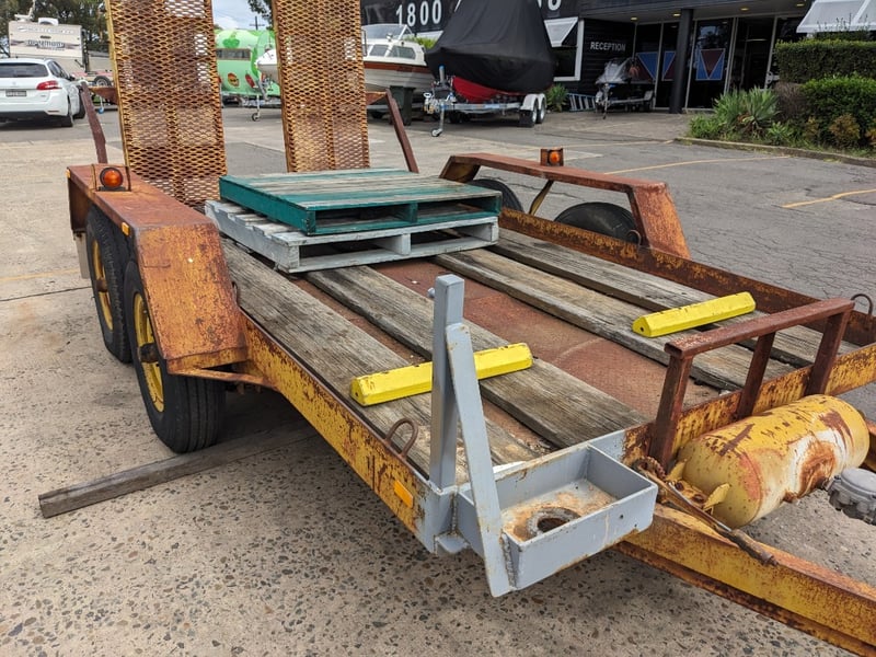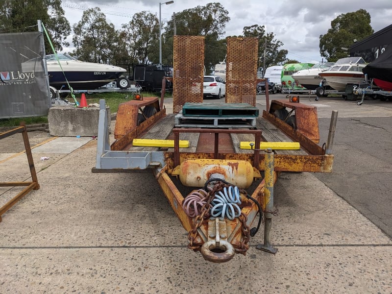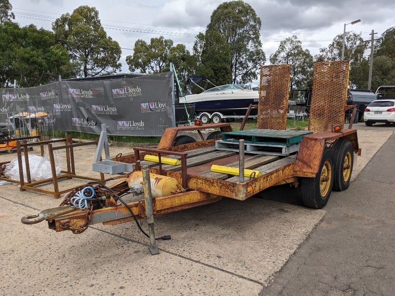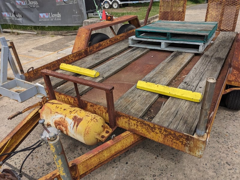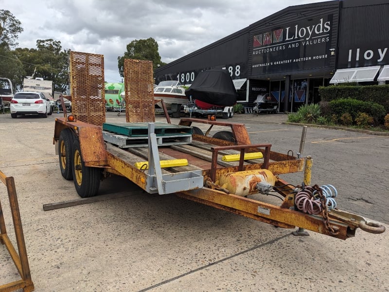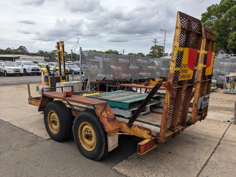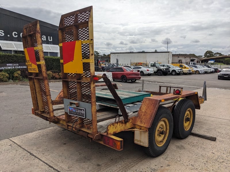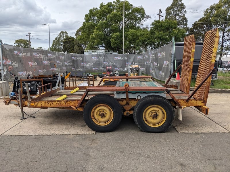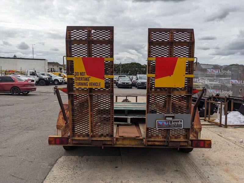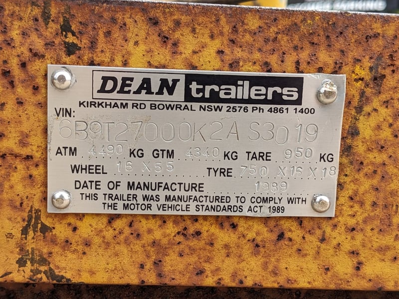 1989 Dean Machinary Trailer Tare Yellow Make: Dean Model: Machinery Body: Trailer Configuration: dual Axle Suspension: Leaf Length: 5.3m L VIN: 6B9T27000K2AS3019 TARE WEIGHT: 950KG ATM: 4490 #NO KEY Lloyds Stock# 581166 #MMR