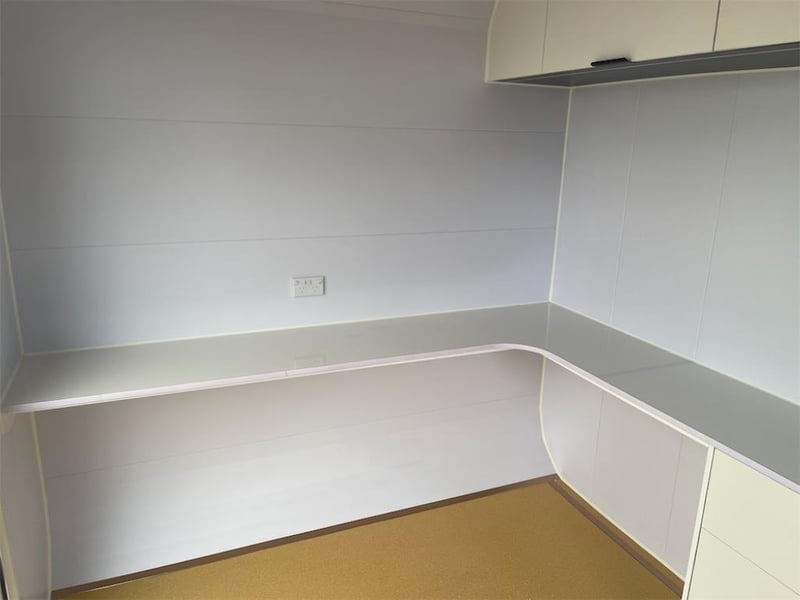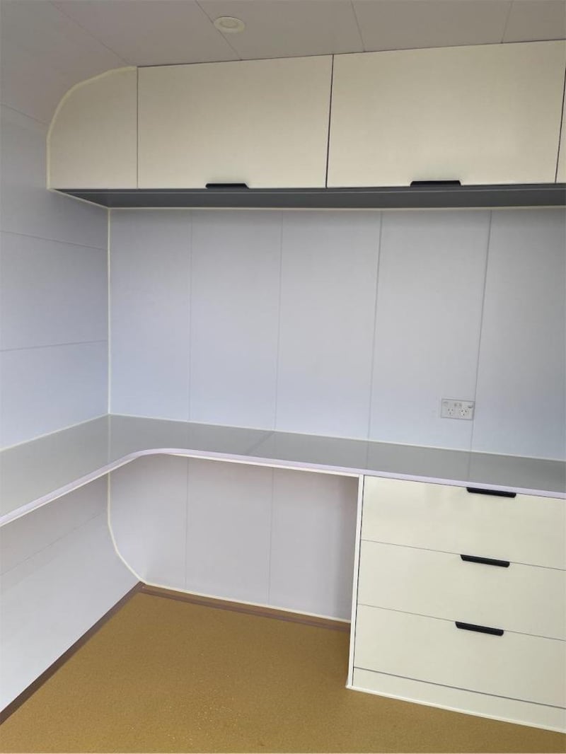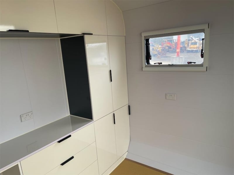 Unused 3m Office Pod, Various Cupboards / Storage, Shipping Dimensions: 2925mm Long x 2200mm Wide x 2363mm High, Weight 870Kgs, ** Note: Photos to be used as a guide only - Unit does not come wired – customer must engage a licensed electrician to supply & install all wiring & components to Australian Standards - this includes switches, Lights & sockets