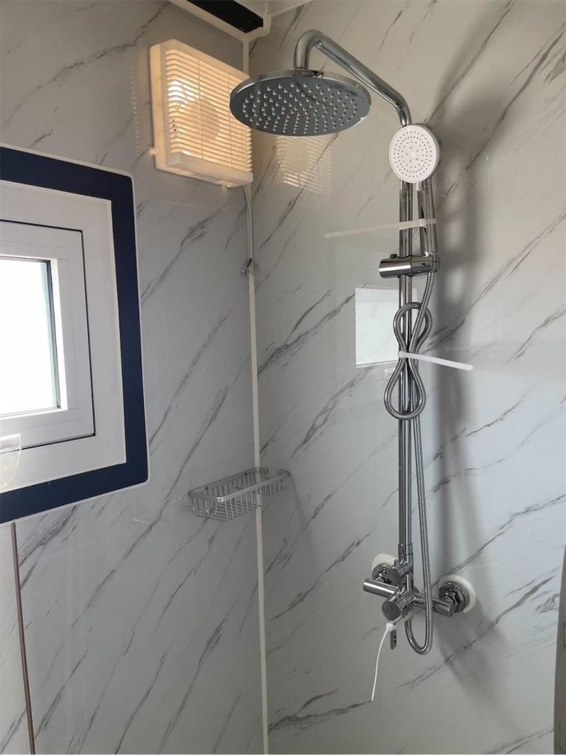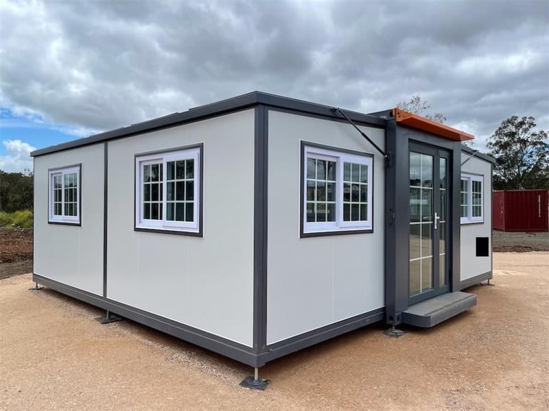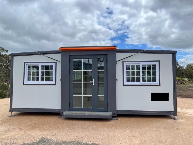 Unused Expandable 2 Bedroom Container House with Ensuite, Model: L0206-BR2, Includes: 8 Sliding lockable Windows, 1 x Door, Timber look flooring, 2 individual Bedrooms, Small Kitchenette, Ensuite fitted with Shower, Toilet, Sink, Mirror, lockable door, Hot & Cold-water inlets, 2 waste outlets, Exhaust fan vent, Gas struts & winches for easy assembly, Size when opened out: 19ft x 20ft, Adjustable feet for easy levelling, Unit is folded up and ready for transport, Toilet, WELS Registration Number: L07047, Efficiency Star Rating 4, Water Consumption Full Flush 4.5 L / Half Flush 3.1 L,