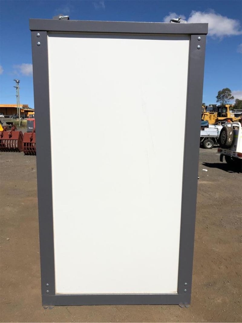 Unused Double Toilet Block, 2 x Separate Cubicles, with sink, toilet, extractor fan, Toilet, WELS Registration Number: L07047, Efficiency Star Rating 4, Water Consumption Full Flush 4.5 L / Half Flush 3.1 L, Nominal Average Flush: 3.4L, Bathroom Tap Equipment, WELS Registration Number: T38665, Water Efficiency Star rating: 5, Water Consumption 6L/min, Approximate Shipping Dimensions: 2160mm L x 1300mm W x 2360mm H, Approximate Weight: 490kg, ** Note: Photos to be used as a guide only - Unit does not come wired – customer must engage a licensed electrician to supply & install all wiring & components to Australian Standards - this includes switches, Lights & sockets