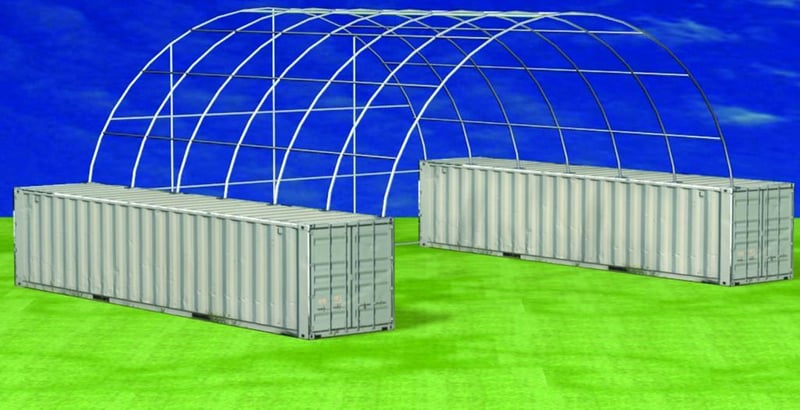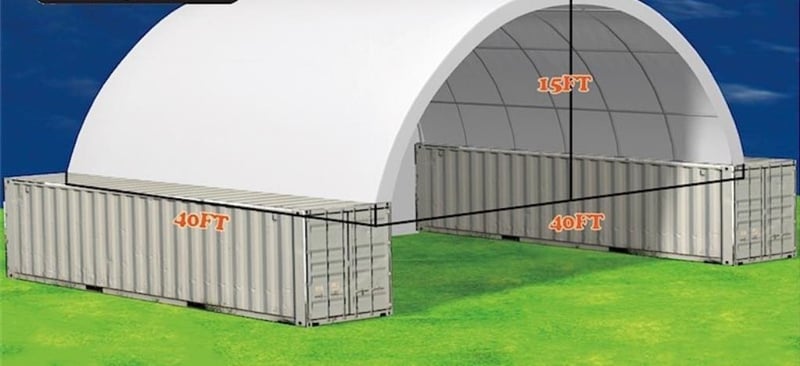 Unused Heavy duty 40ft Container Shelter with End wall, Model: C4040E, 40ft wide x 40ft long x 15ft High, Heavy duty PVC fabric, galvanised tube frame, Approximate Shipping Dimensions: 2430mm L x 740mm W x 1280mm H, Approximate Weight: 1150kgLocation: Onsite Shepparton, VIC (Not Lloyds Branch)REF: 170889