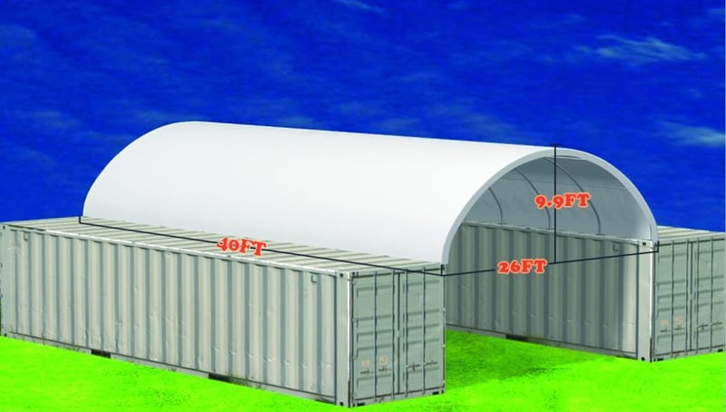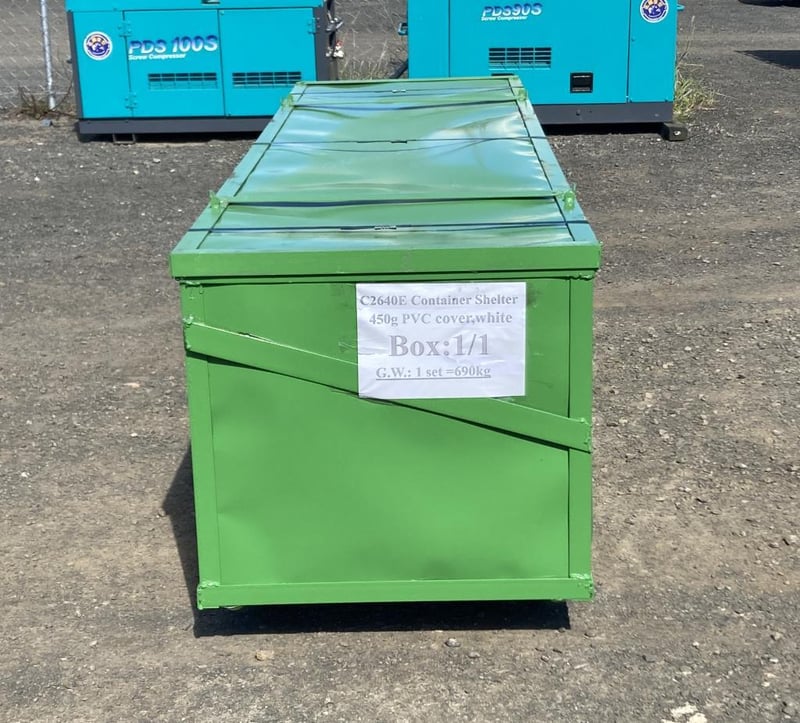 Unused Heavy duty 40ft Container Shelter, Model: C2640, 40ft long x 26ft wide x 9ft 9in high, No end wall, Heavy duty PVC fabric, galvanised tube frame, Approximate Shipping Dimensions: 2680mm L x 740mm W x 550mm H, Approximate Weight: 560kgLocation: Onsite Shepparton, VIC (Not Lloyds Branch)REF: 165636