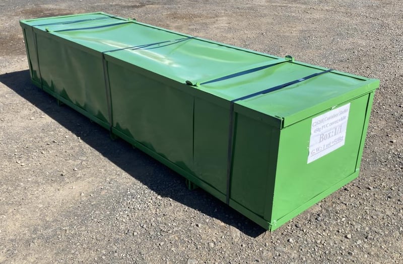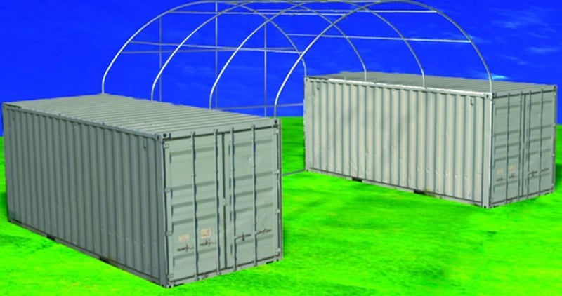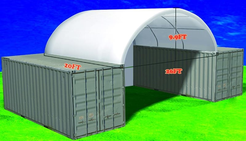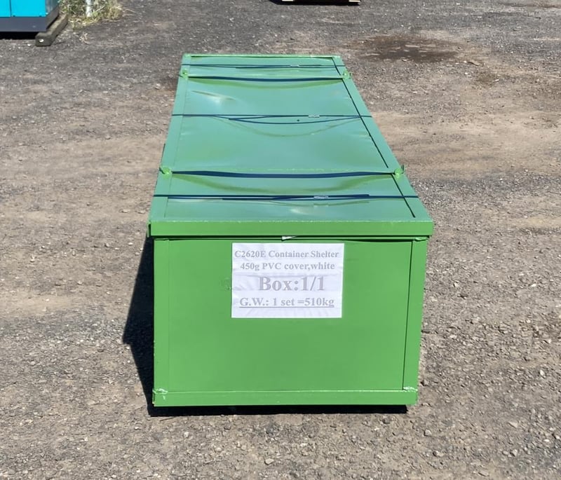 Unused Heavy Duty 20ft Container Shelter With End Wall, Model: C2620E - 26ft Wide, 20ft long x 26ft wide x 9ft 9in high, Heavy duty PVC fabric, Galvanised tube frame, Shipping Dimensions: 2690mm L x 750mm W x 560mm H
