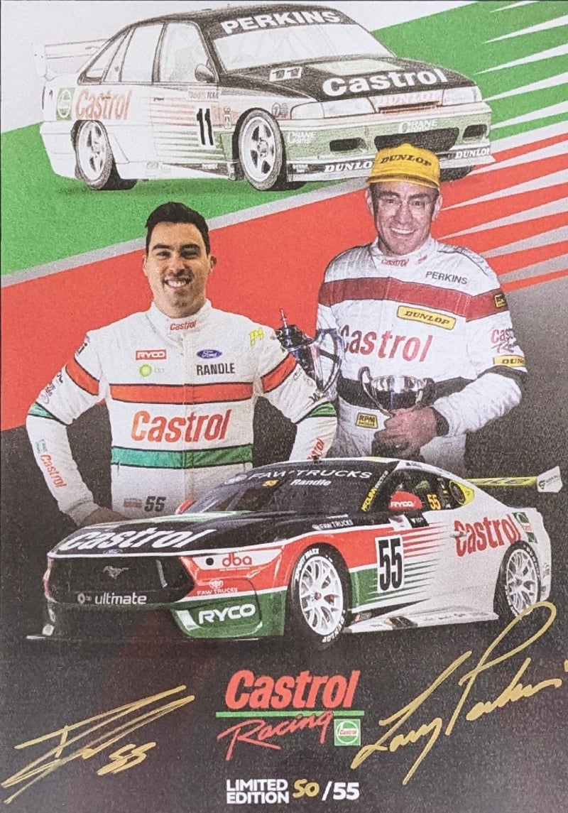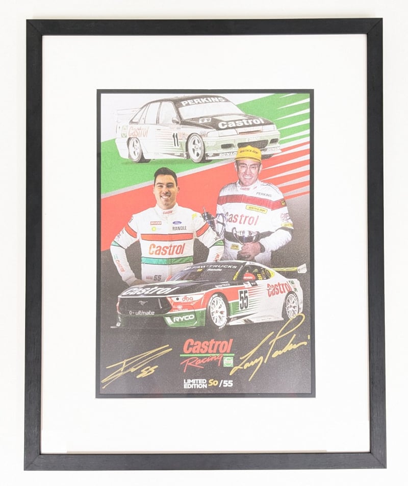 Limited Edition Numbered 50/55 Framed Signed Print, Featuring Australian V8 Supercar Drivers Larry Perkins and Thomas Randle.