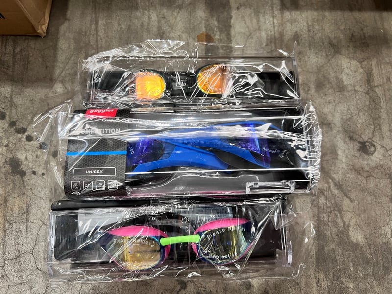 Swimming goggles, blue/black/pink, quantity: 5 boxes (12 goggles per box)