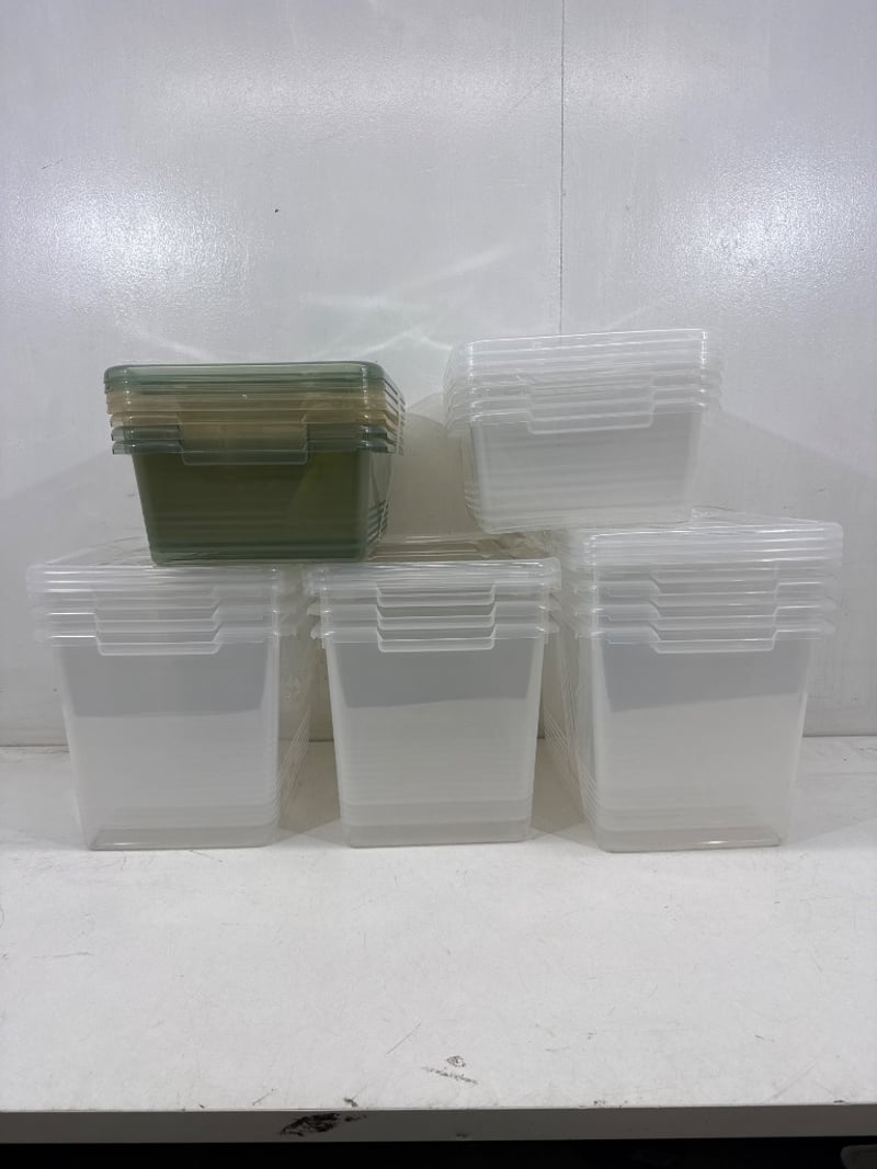 Plastic tubs, White and Green Plastic tubes, assorted sizes and shapes. Quantity- 18 tubes, sold as lot.