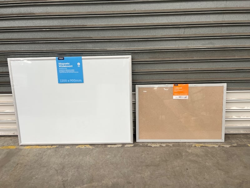 Office supplies, includes; Magnetic Whiteboard, cork board, J.BurrowsSold as lot