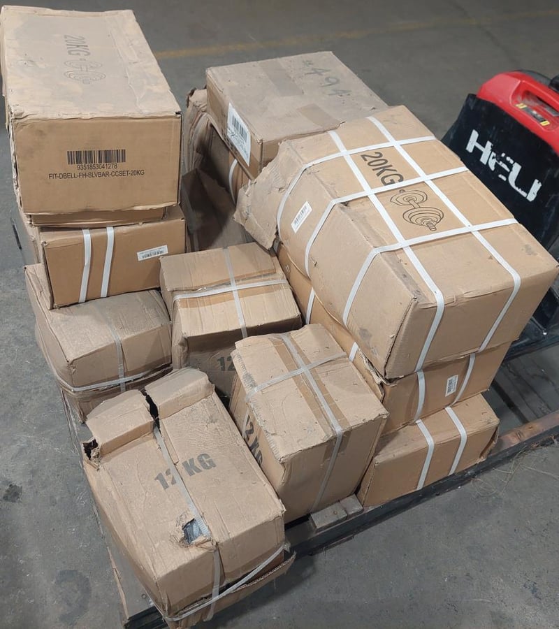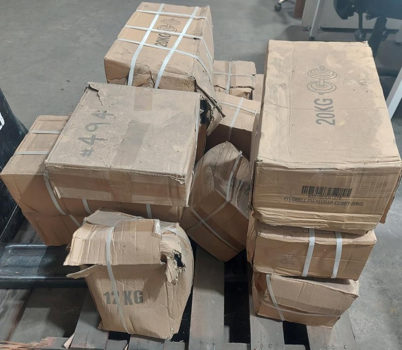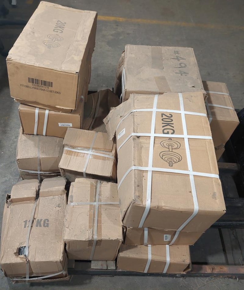 Assorted Pallet of dumbbells, various weight and sizes(12KG, 20KG).