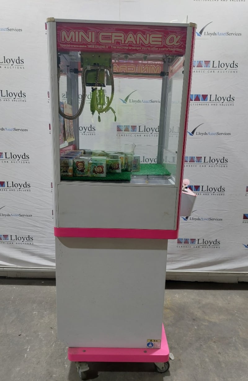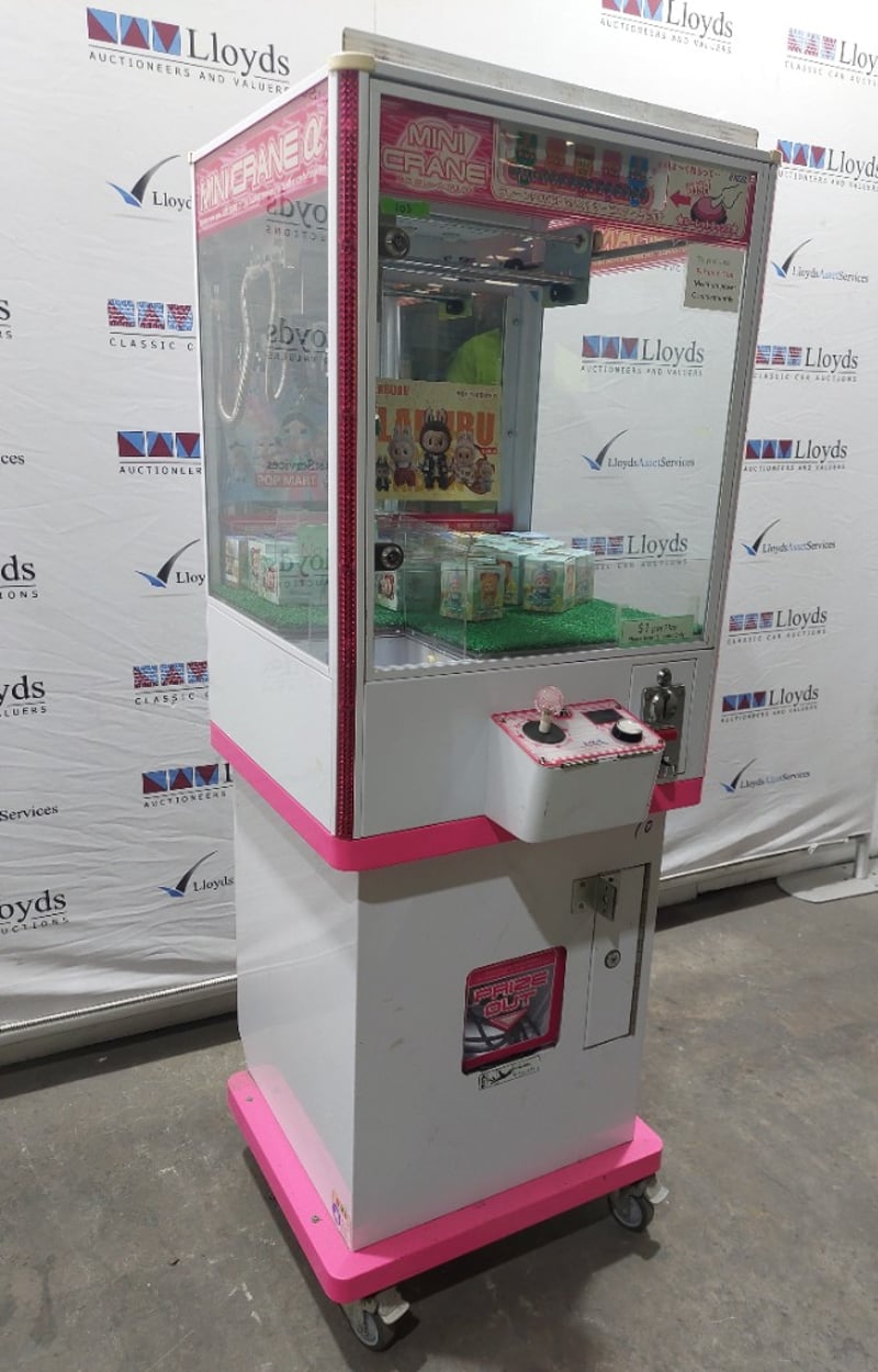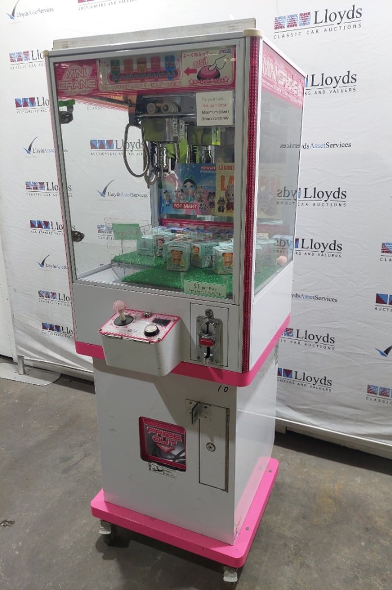 Arcade Claw Machine - Excel 'Mini Crane', single player, pink theme, joystick controls, coin operated, mobile.S/N: 2861172Dims: 1600mm x 700mm x 700mmNote: Item is untested, with signs of wear, keys included.
